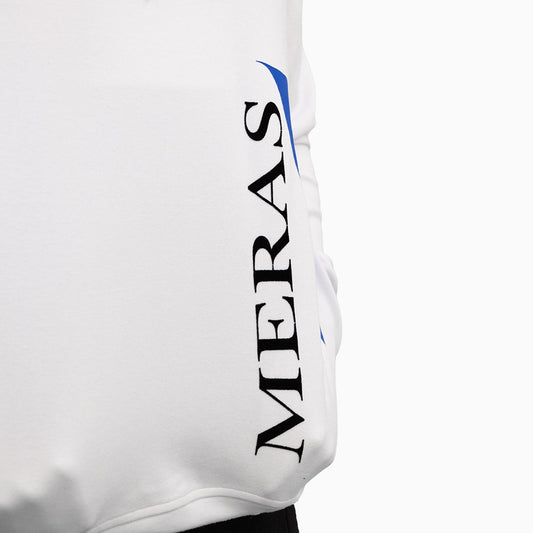 Men's Fleece White Blue Front Small Logo Pull Over Hoodie