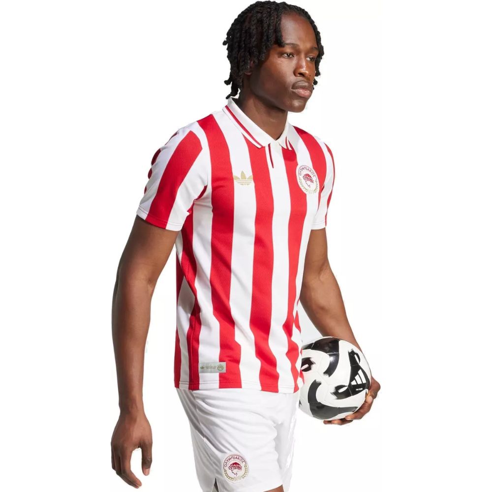 Εμπνευσμένη από την πορεία της ομάδας και τις χαρακτηριστικές ερυθρόλευκες εντός έδρας εμφανίσεις της, η δημιουργική ομάδα σχεδιαστών στα κεντρικά της adidas συμπεριέλαβε τον «θρυλικό» συνδυασμό από κόκκινες και λευκές ρίγες που αντικατοπτρίζουν την ιστορική διαδρομή του Ολυμπιακού.
