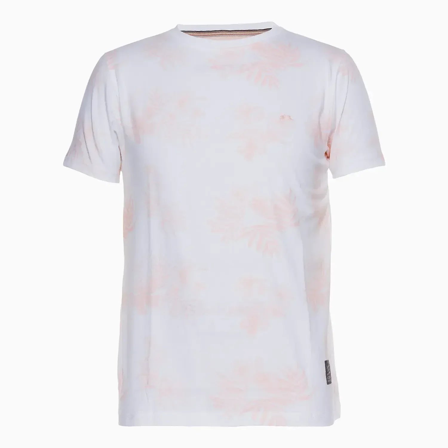 - Woven authenticity label at the lower left corner near the hem
