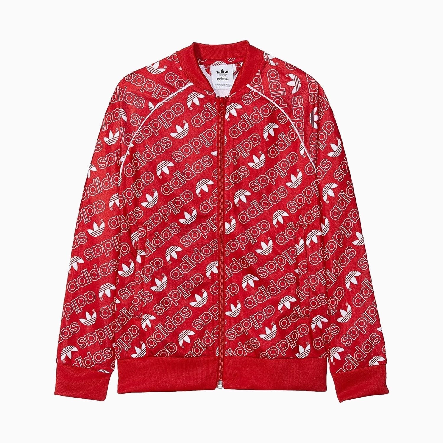 Outfit your little one in ultimate style with this Kid's Trefoil Monogram SST Track Jacket from adidas. Constructed with a relaxed fit and ribbed cuffs, this classic piece will keep them comfortable and looking great, featuring an embroidered logo and classic Trefoil print for a signature finish.