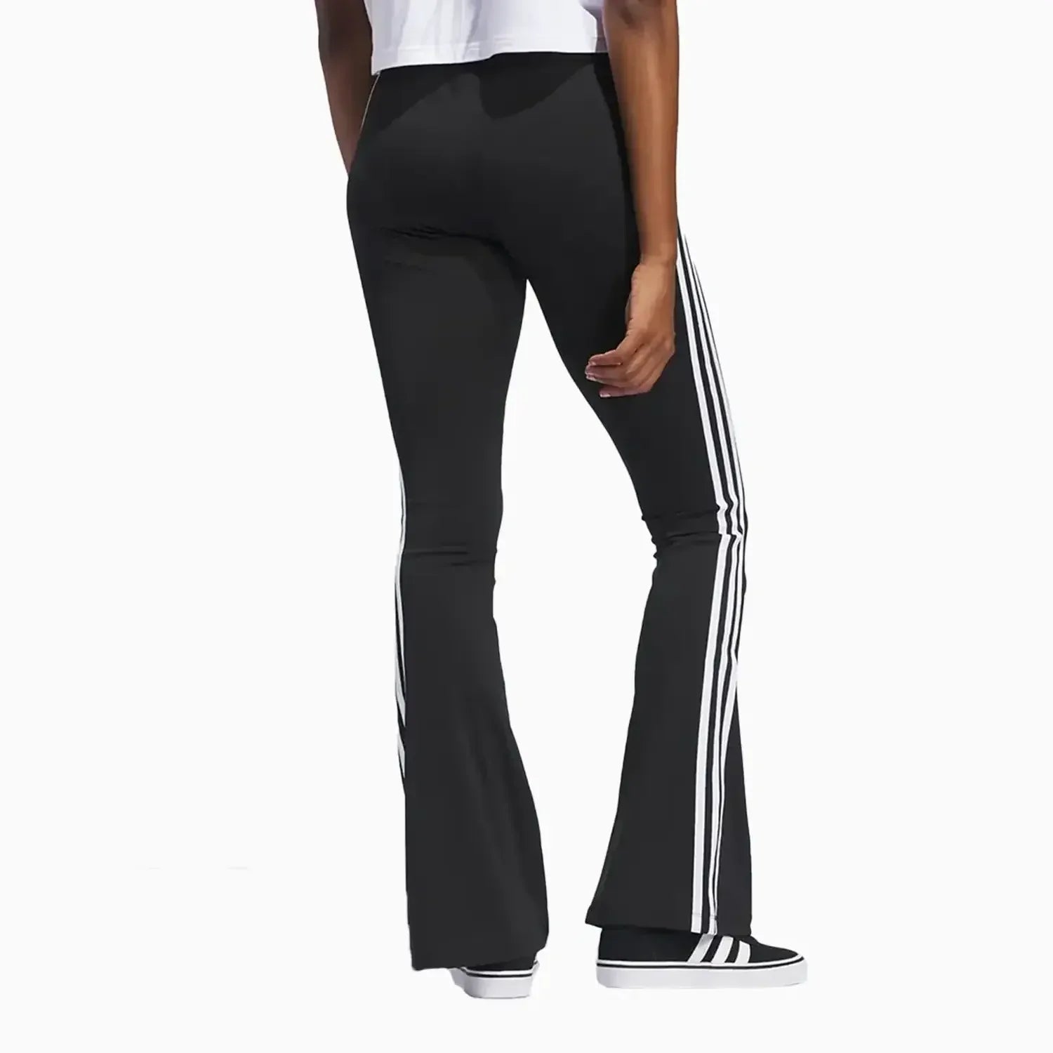 These adidas leggings are a modern sporty take on retro bell-bottoms. The flared lower legs embody an era-defining look of fun and self-expression, while the stretch fabric and 3-Stripes down each leg bring home the casual comfort. Complete the look with a crop top and slides for a throwback easy style.Made with a series of recycled materials, and at least 70% recycled content, this product represents just one of our solutions to help end plastic waste.