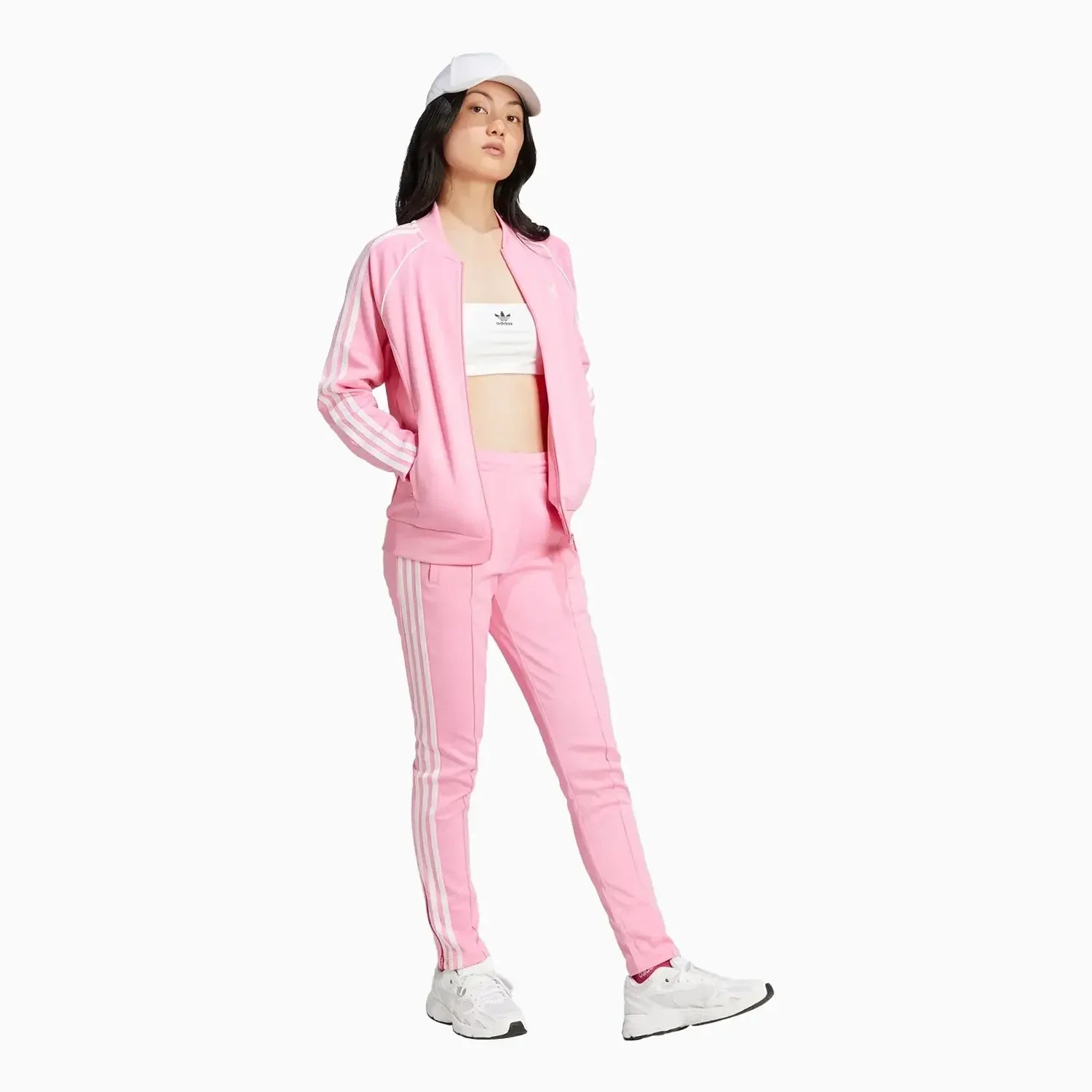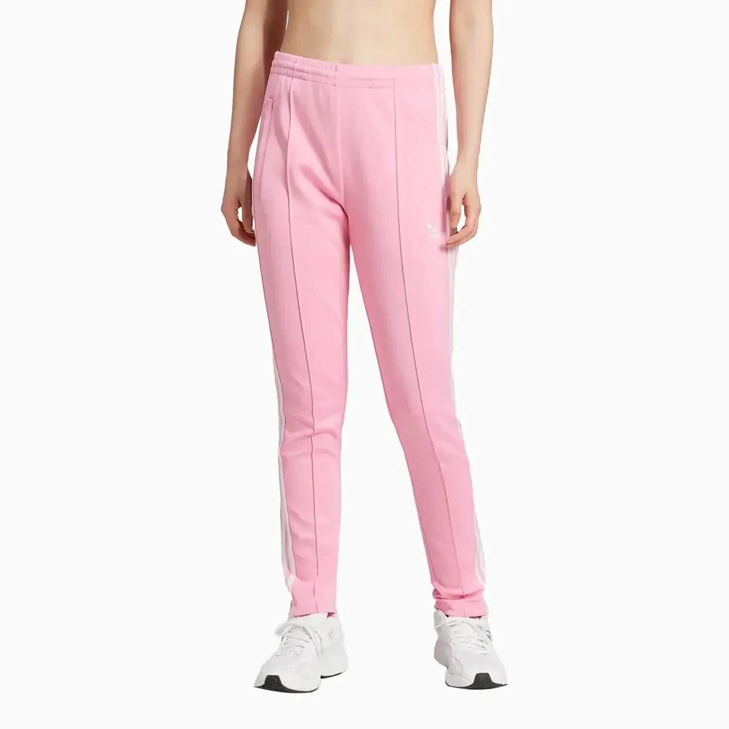 Make yourself comfortable in these adidas track pants. The slim fit keeps your lines clean, while the stretchy double-knit gives you the freedom to move. Tall 3-stripes down the legs call on that sporty heritage. Complete the look with a coordinating track jacket and a contrasting crop top, and you're all set for your day — no matter what you have planned. A minimum of 70% of this product is a blend of recycled and renewable materials.