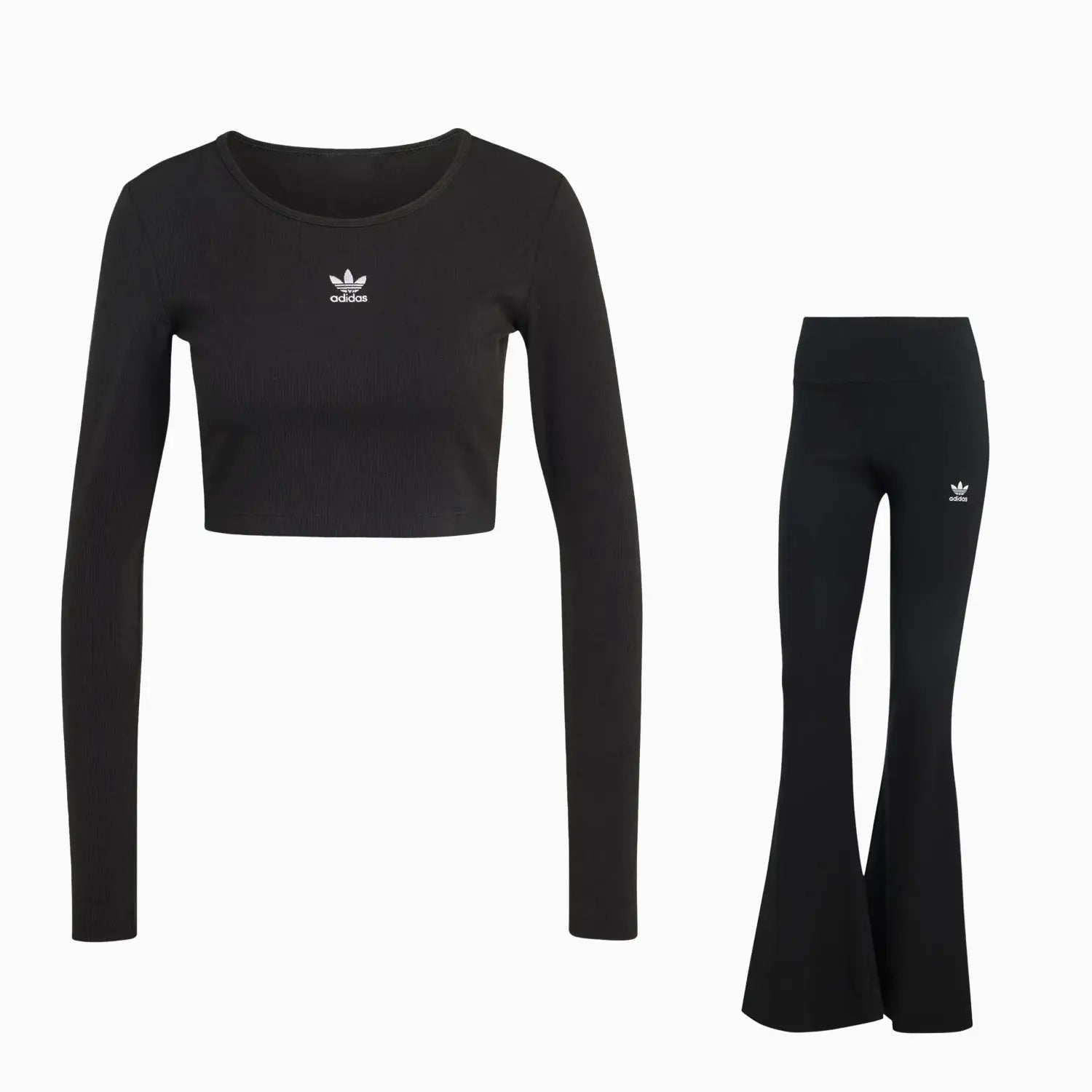 Built to move with you. Sporty yet stylish, these adidas ribbed leggings have a tight, stretchy fit that opens up into flared hems. Pull them on for a chill day at home or wear them out on the town—in motion or at rest, you'll feel supported and chic.