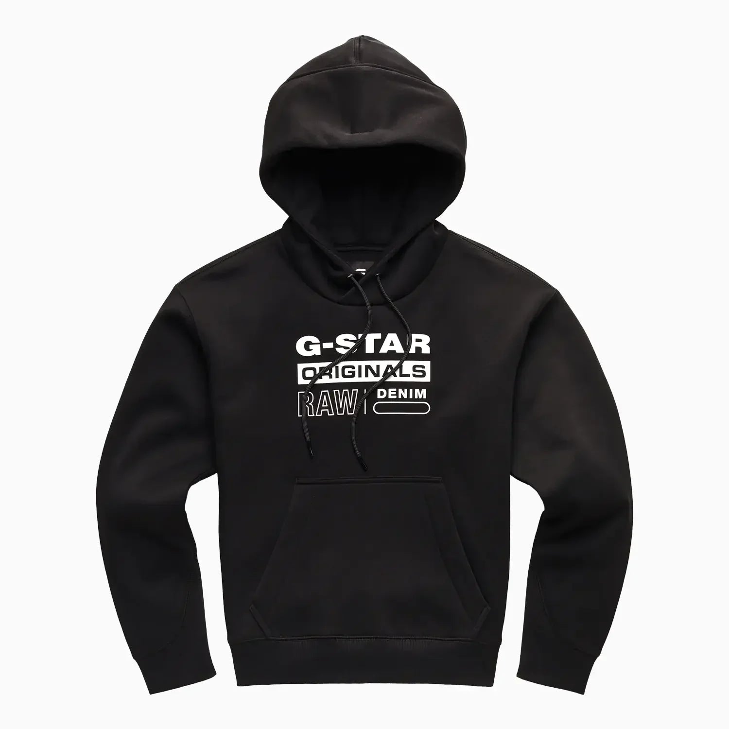 Fashion belongs to you by G-Star Raw Women's Premium Core Originals Logo Hoodie featuring a hood with drawstrings, cross over the front neck, long sleeves- straight inset- curved edge, ribbed cuffs, and waist, kangaroo pocket, originals print above the kangaroo pocket in straight fit style.