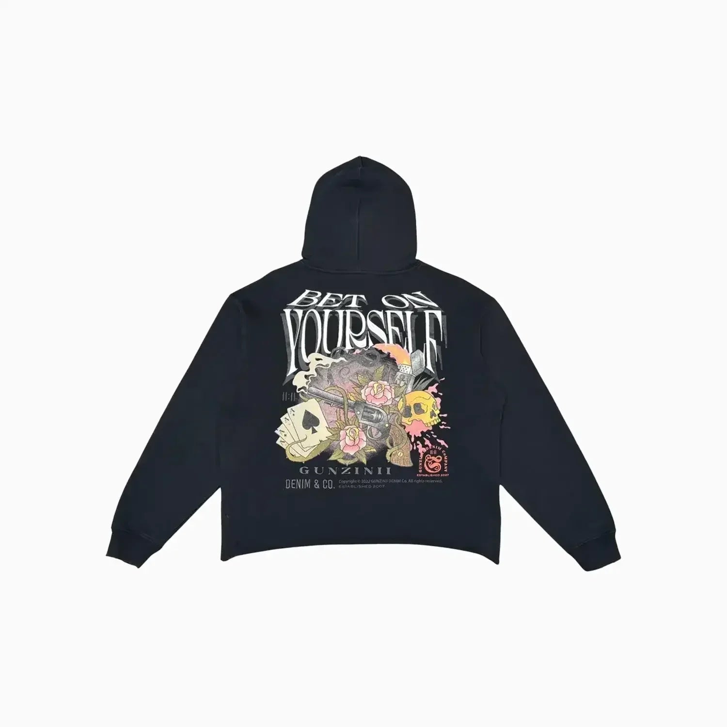 Stay motivated and comfortable in the Gunzinii Men's Bet On Yourself Pull Over Hoodie. Made with high-quality materials, this hoodie features a unique design that serves as a constant reminder to always bet on yourself. Whether you're working out or just lounging, this hoodie is the perfect choice for any man looking to inspire confidence and success.