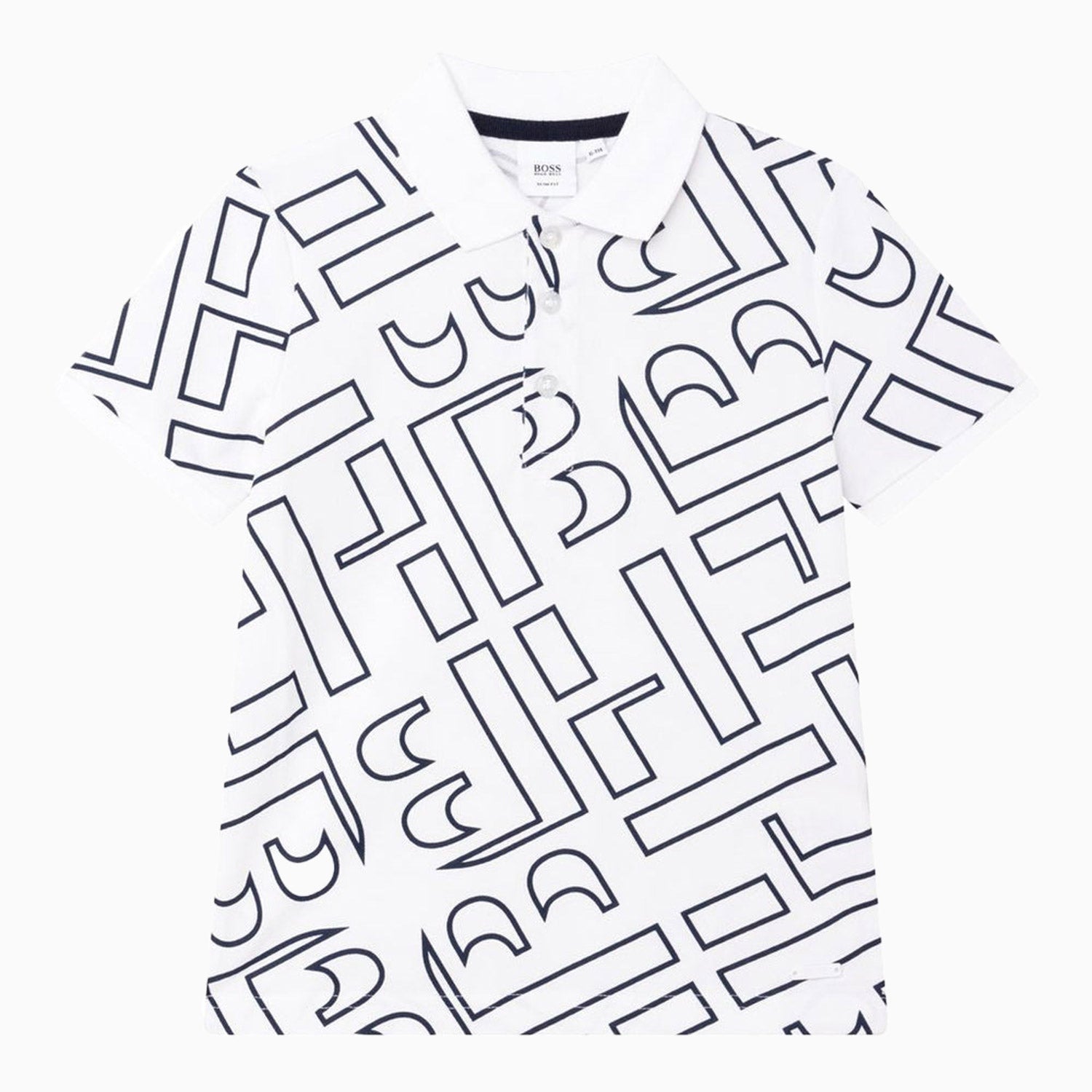 Hugo Boss Kid's HB Print All Over Polo Shirt features an abstract design with short sleeves offering a smart and casual look for any occasion of the sort albeit gracefully.