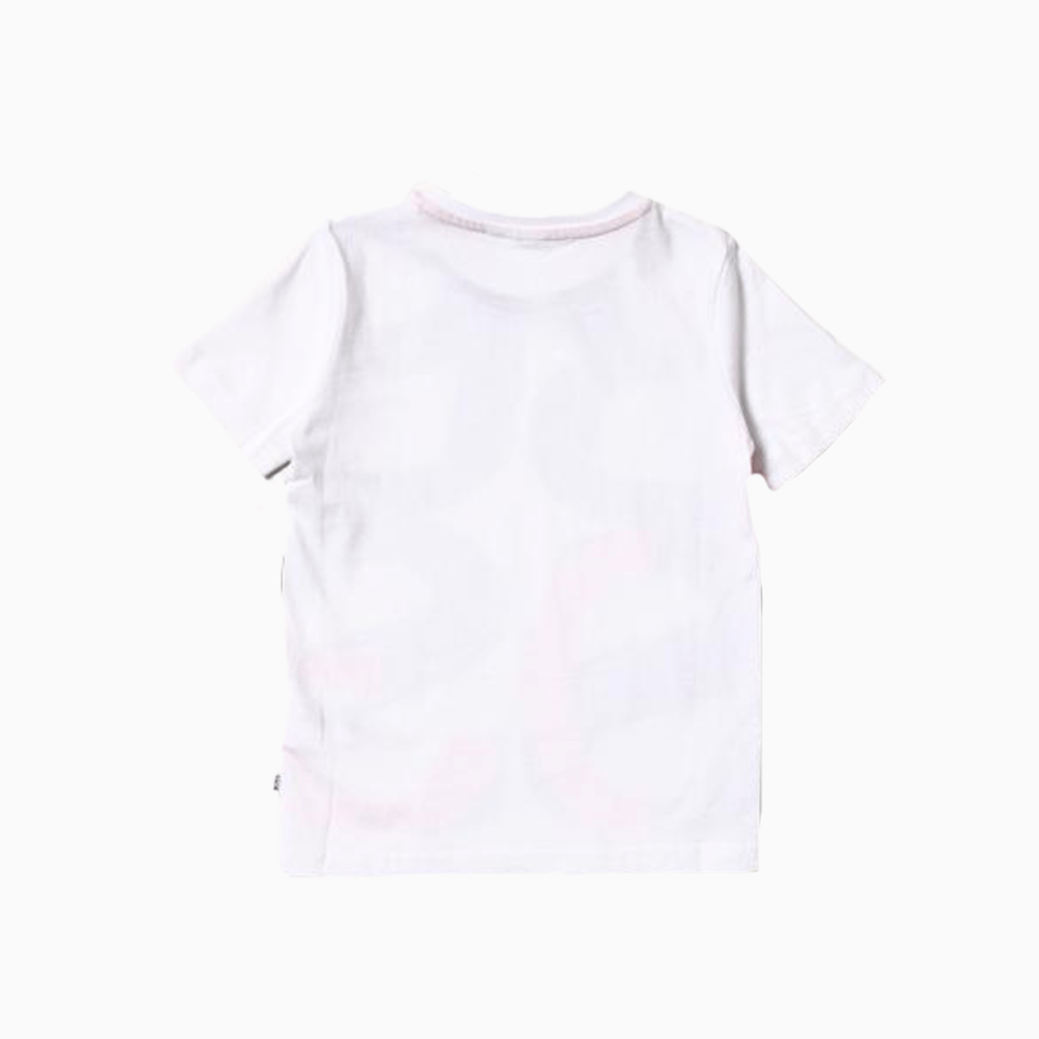Hugo Boss Kid’s Large Text logo T-Shirt features soft cotton jersey in crew neck, short sleeves, multiple colors logo print, a small logo tab on the side seam offering a feasible solution in smart dressing.