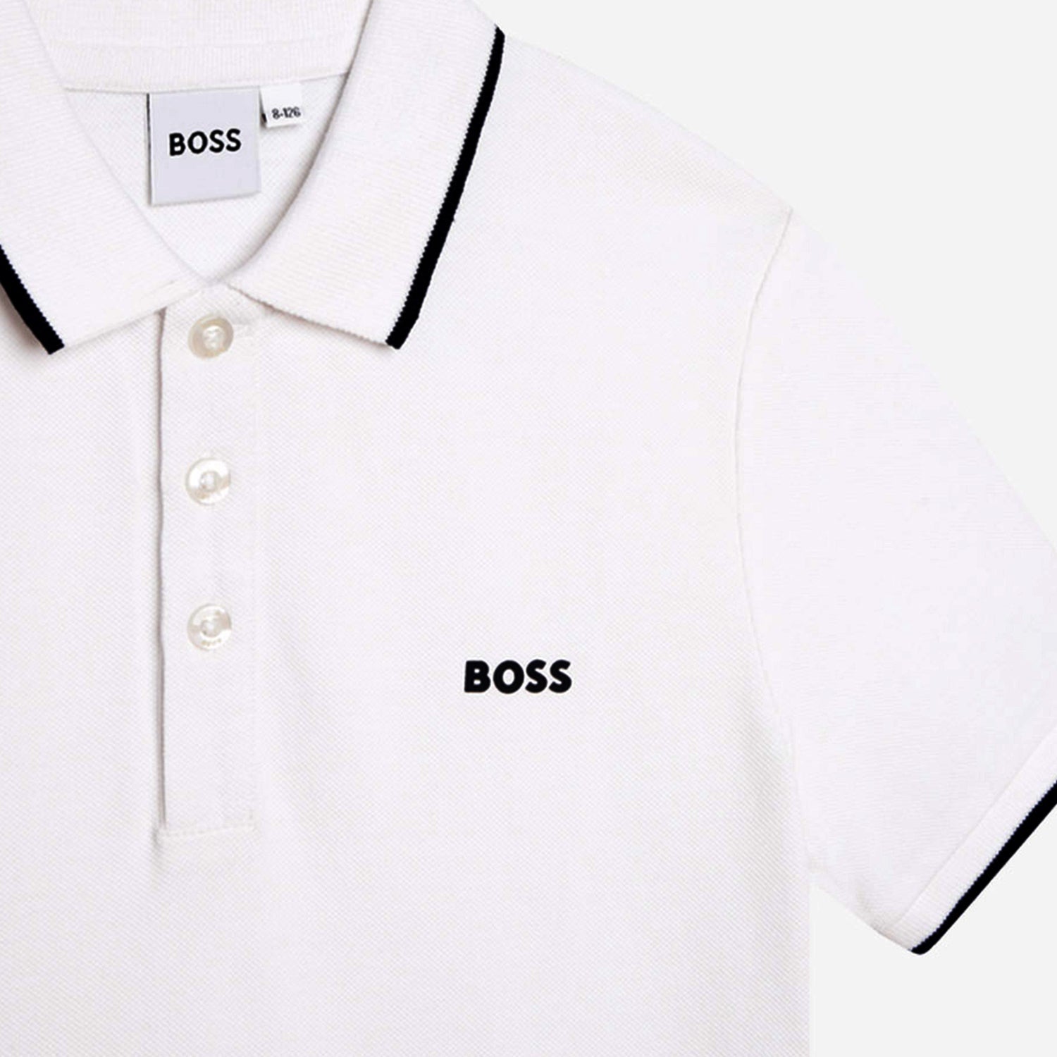 The Hugo Boss Kid's Logo Short Sleeve Polo Shirt provides all-day comfort and style. Its patented fabric blend is lightweight and breathable, delivering exceptional softness and resilience. Its ribbed collar and cuffs are designed to keep the shirt in place, ensuring kids stay comfortable and look sharp.