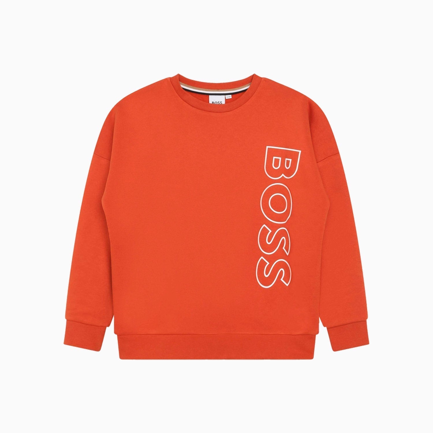 The Hugo Boss Kid's Mini Me Graphic Vertical Logo Sweatshirt is perfect for kids in the cooler seasons. Its cotton and polyester blend fabric offers a lightweight yet warm feel with a comfortable, snug fit. The bright and bold vertical logo design provides classic style and can easily pair with any outfit.