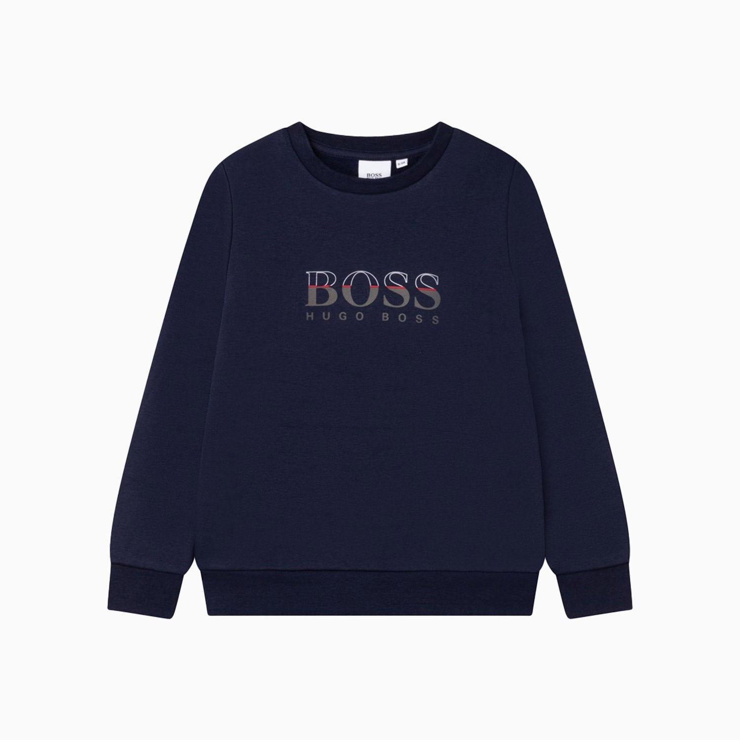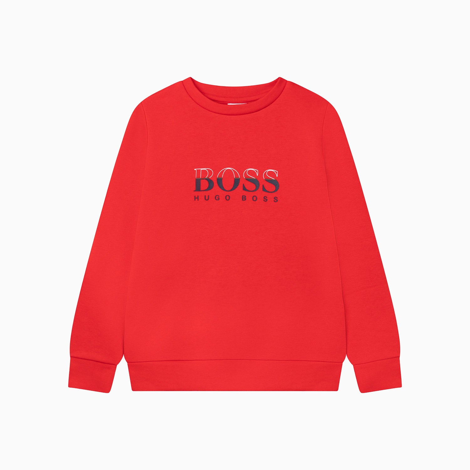 Hugo Boss Kid's Technical Logo Sweatshirt offers black, fleece, technical logo on the front offering a famous coverage for outings and social events.