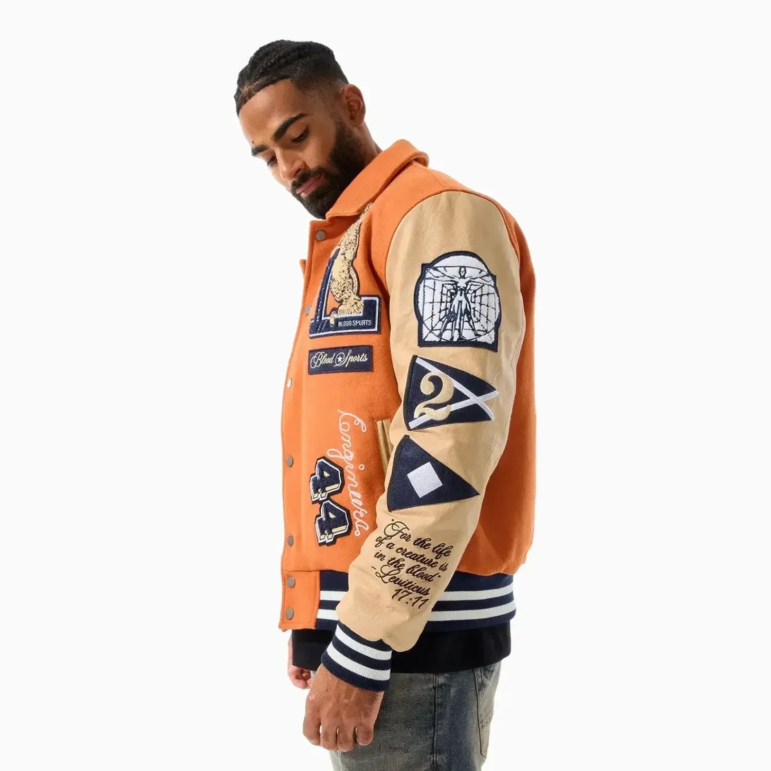 This Jordan Craig Men's Carpe Diem Varsity Jacket is made for men. It is designed with high-quality materials and detailed stitching. With a classic varsity style, this jacket provides both comfort and style. Stay warm and look stylish with this versatile jacket.