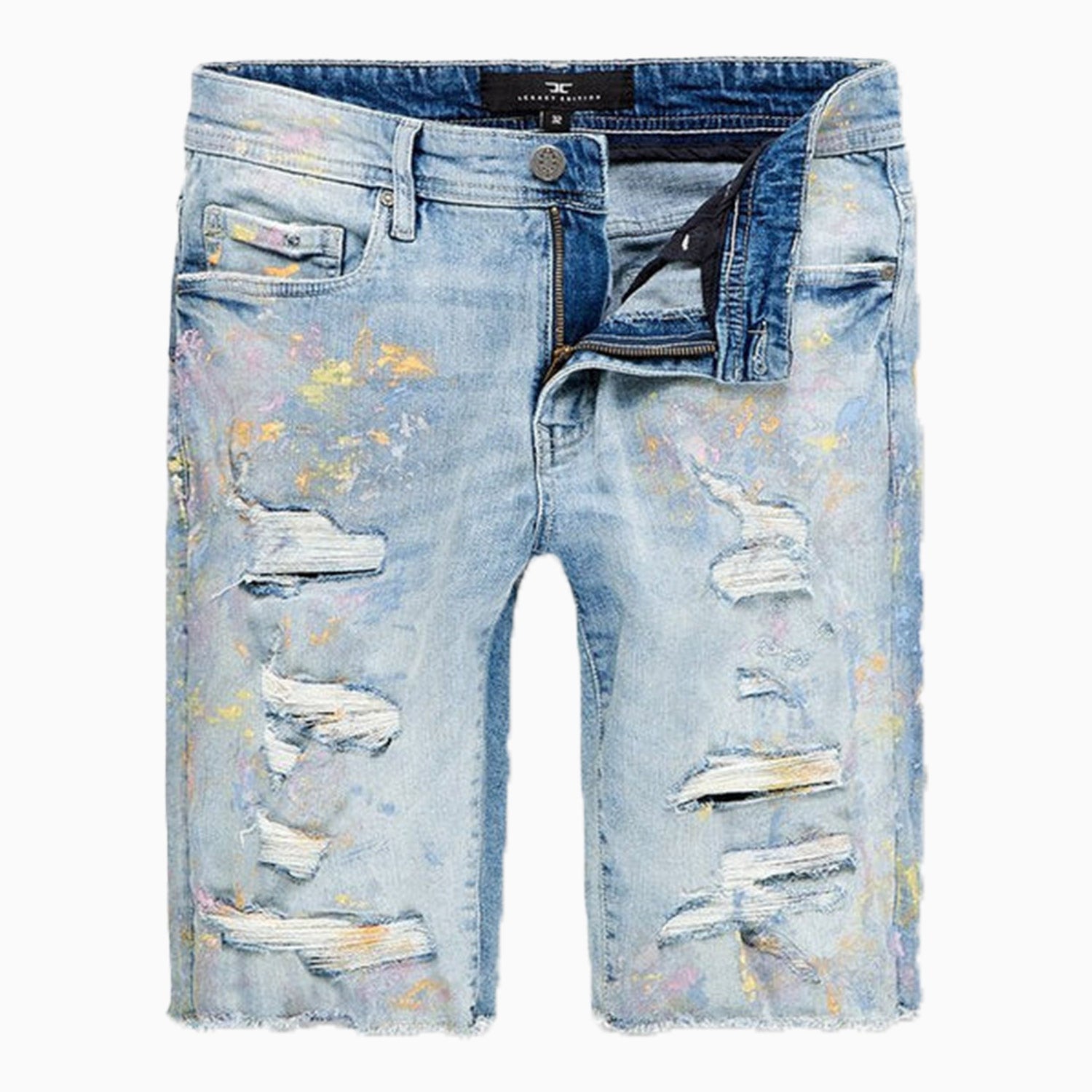 Play your clothing cards smartly with Jordan Craig Men’s Vengeance Denim Short, featuring a regular rise, potassium brushing, rip-and-repair design with raw denim backing, hand-smeared paint details, and unique distressing on each pair. Perfect for every-day wear.