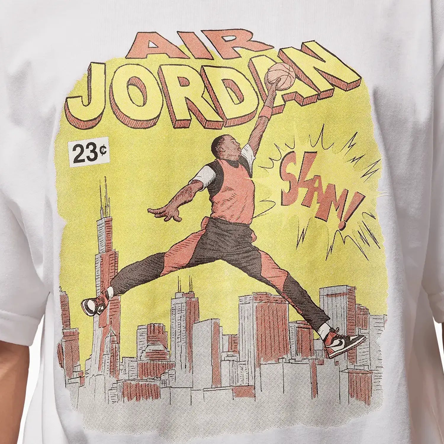 A comic-inspired twist on MJ's iconic Jumpman photo gives this soft, midweight cotton tee a retro feel.