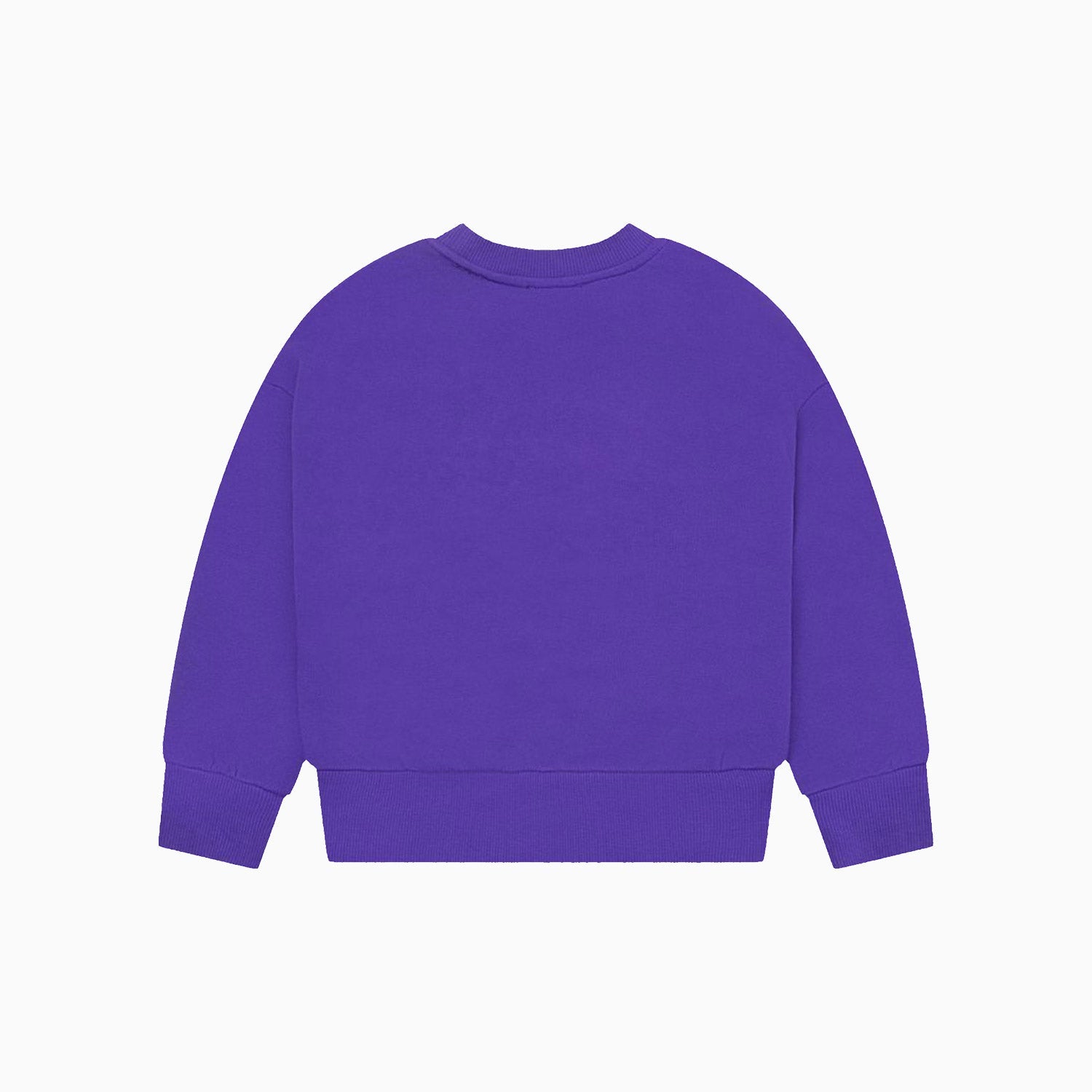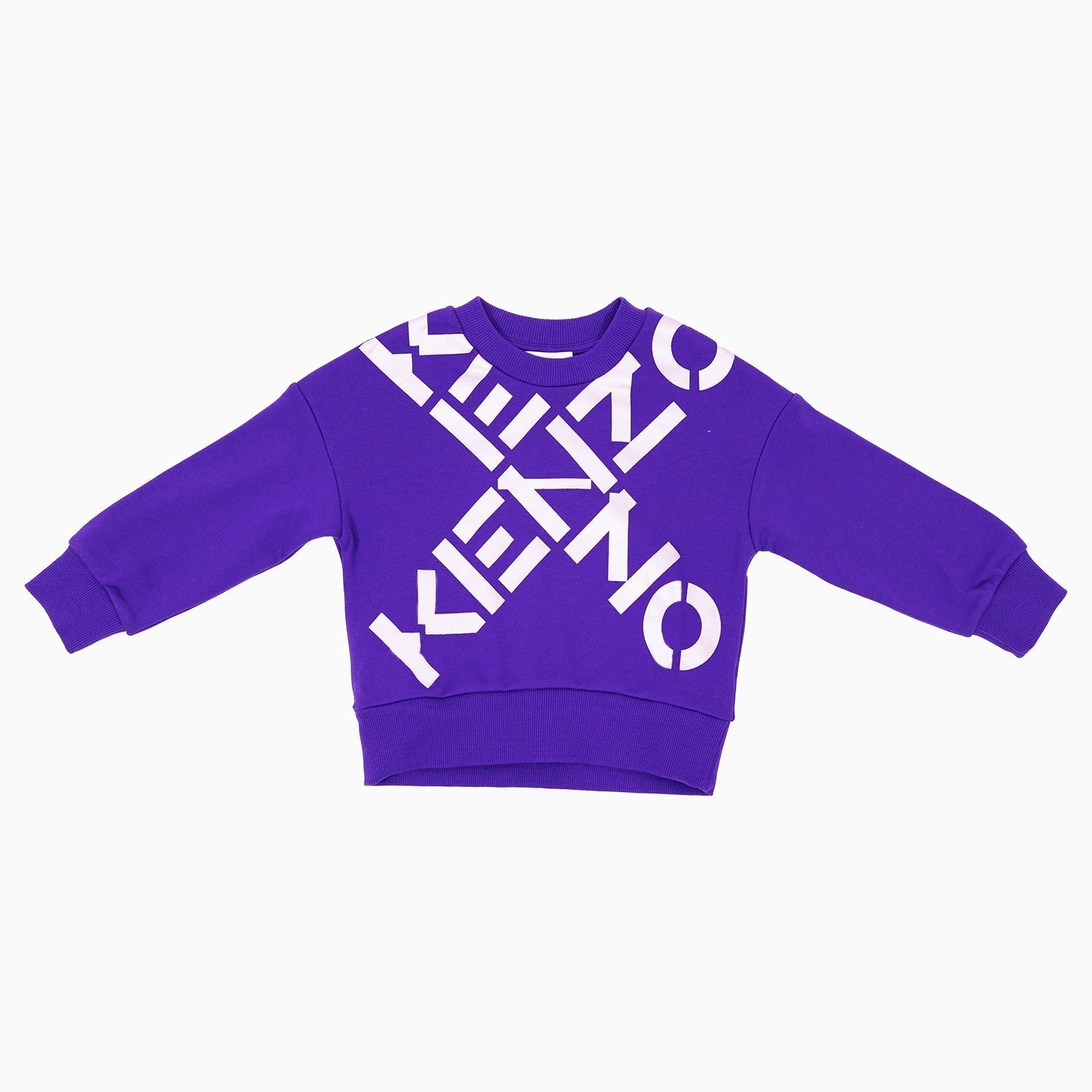 Smart Kenzo sweatshirt in purple, and on the front is printed a large cross made of the name "Kenzo" in metallic pink. The Kenzo sweatshirt has long sleeves and soft ribbed edges.