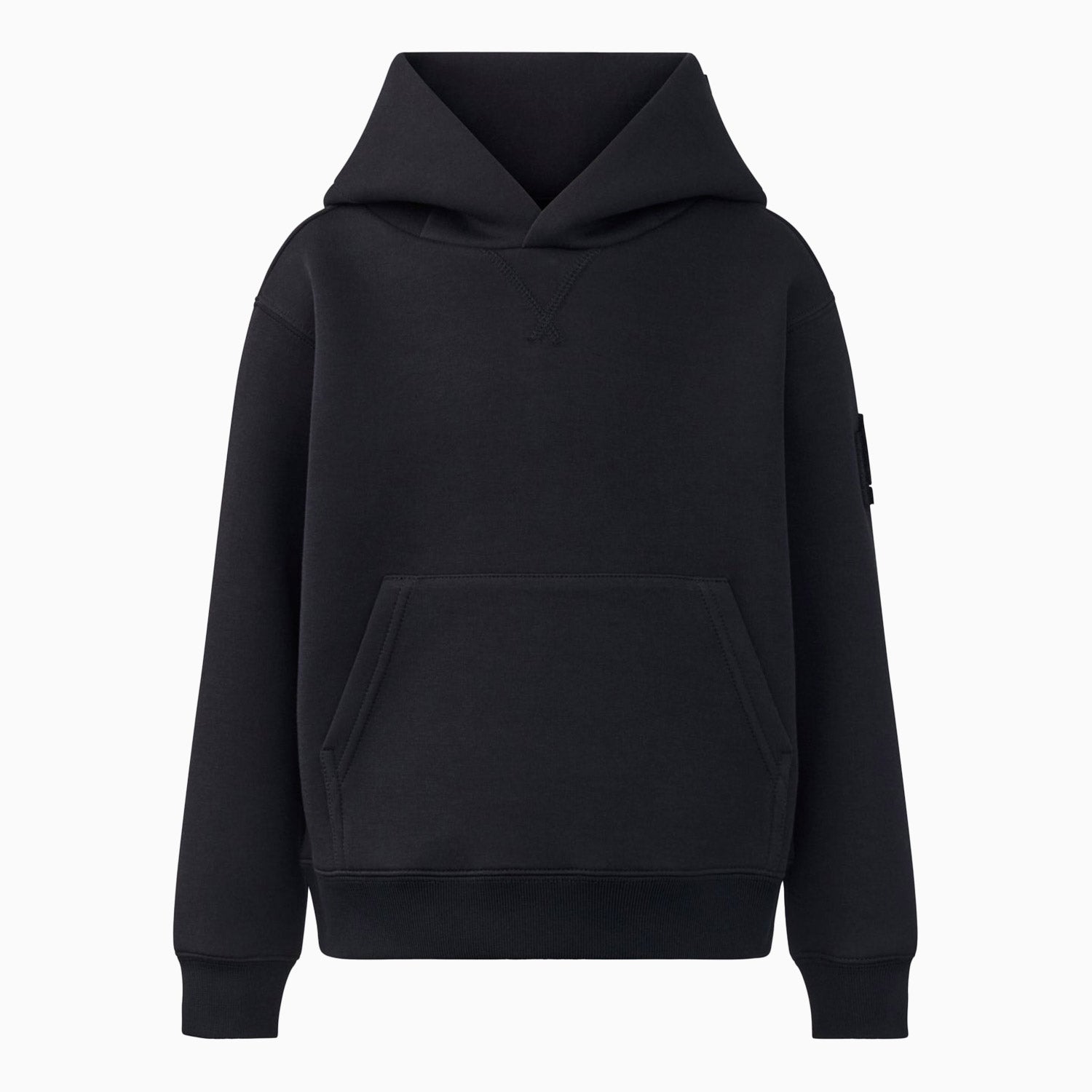 DRU is an ultra-soft double-face jersey hoodie for boys and girls with a classic kangaroo pocket. A relaxed layer-ready silhouette, it features plush velvet embroidery logo marks across the lined hood and left sleeve. Rib knit cuffs and hem bring a cozy feel. The perfect all-season indoor-outdoor staple for little explorers.