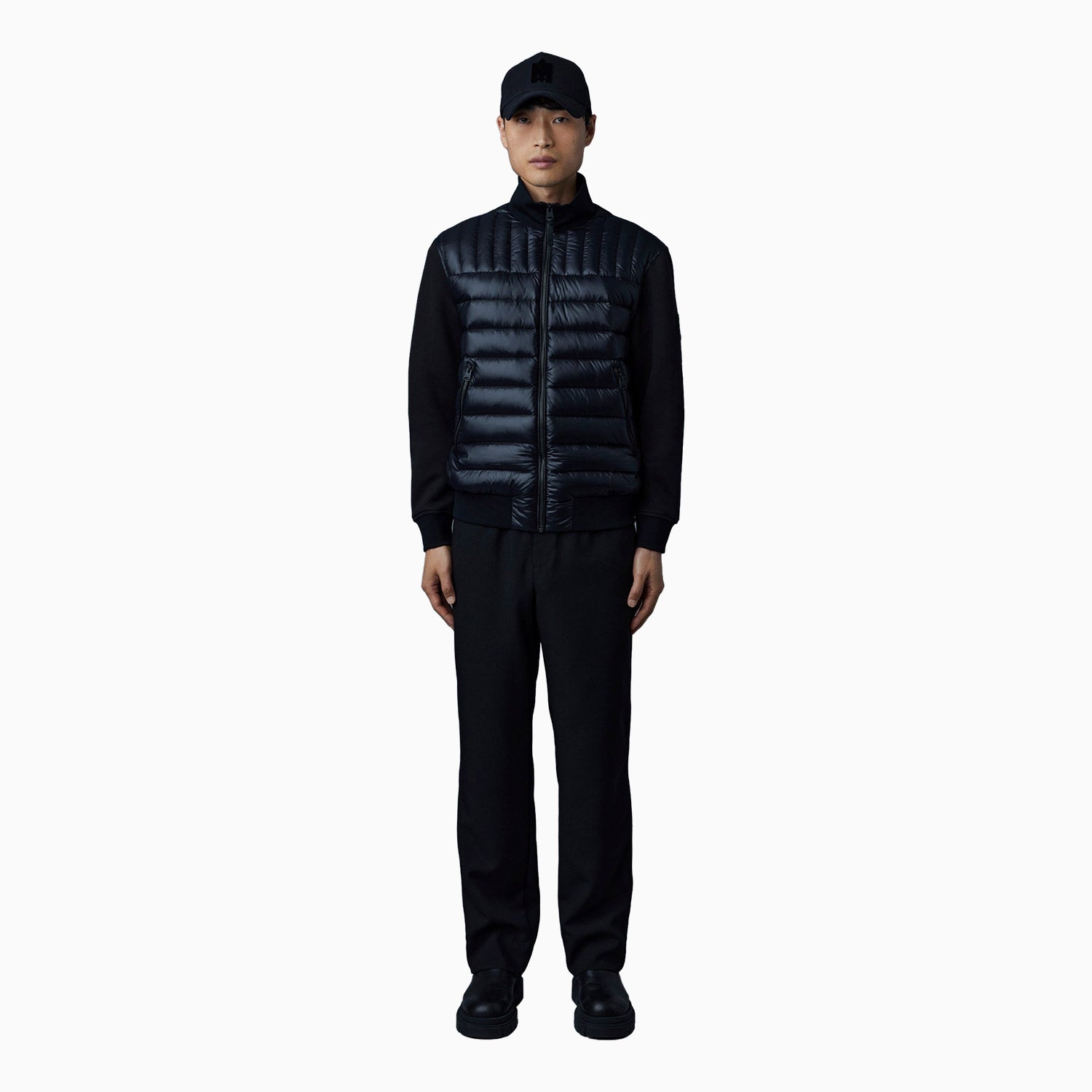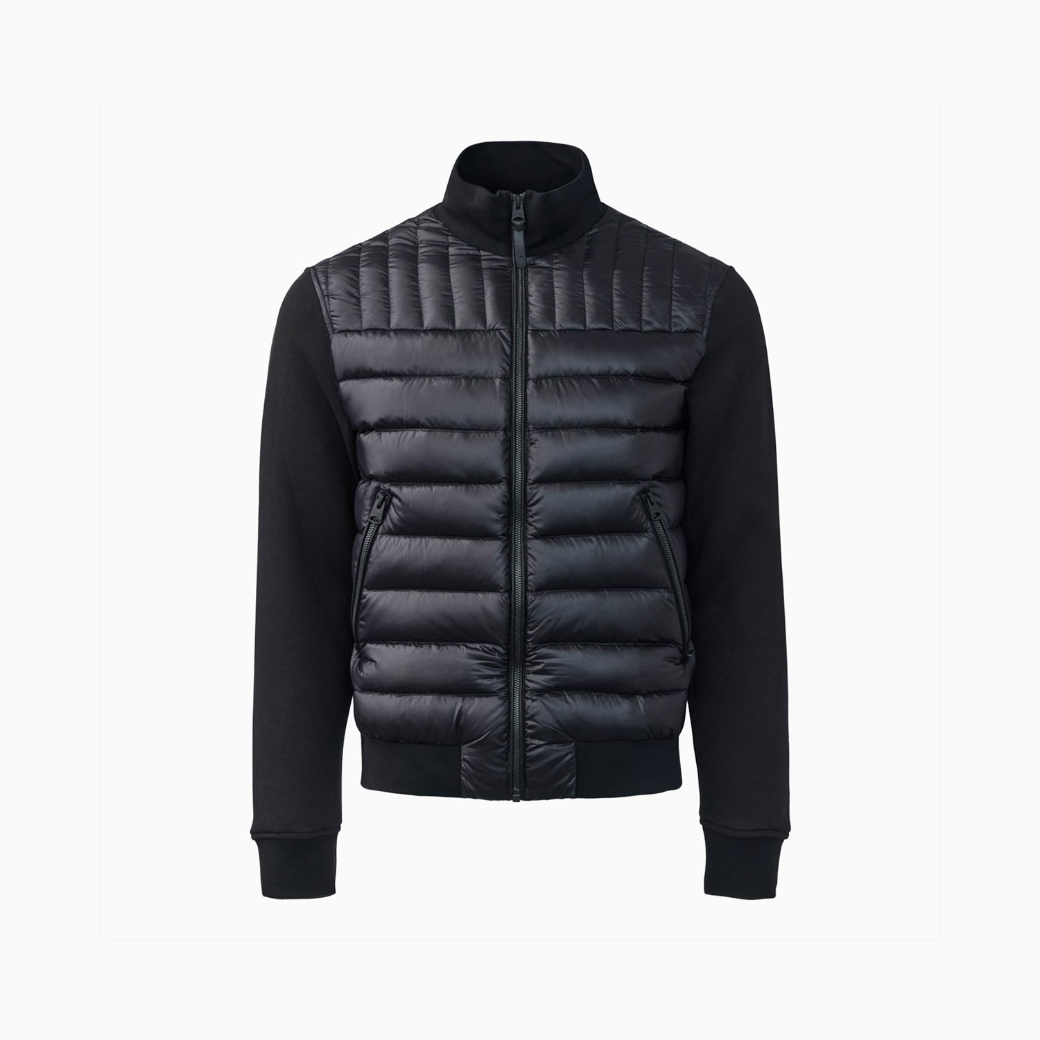 COLLIN is a transitional jacket for men with a classic bomber style. Expertly tailored to a slim fit, it features a recycled lustrous nano down front contrasted with soft double-face jersey sleeves and back. The rib knit stand collar and trims add tactical detailing and warmth. A modern multi-season layer with effortless style.