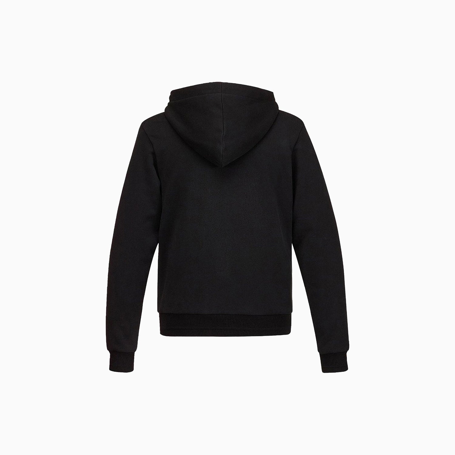 Akin to classic rock n’ roll emblems, a fiery MCM logo is emblazoned on the chest in rich embroidery. The organic French Terry cotton comprising the hooded sweatshirt is Control Union certified, abiding by chemical-free farming practices that minimize damage to the global ecosystem. A detachable nylon belt bag features the season’s Wave Visetos pattern, matching the multiple dimensions of form and function offered by this novel duo.