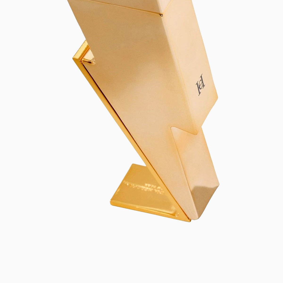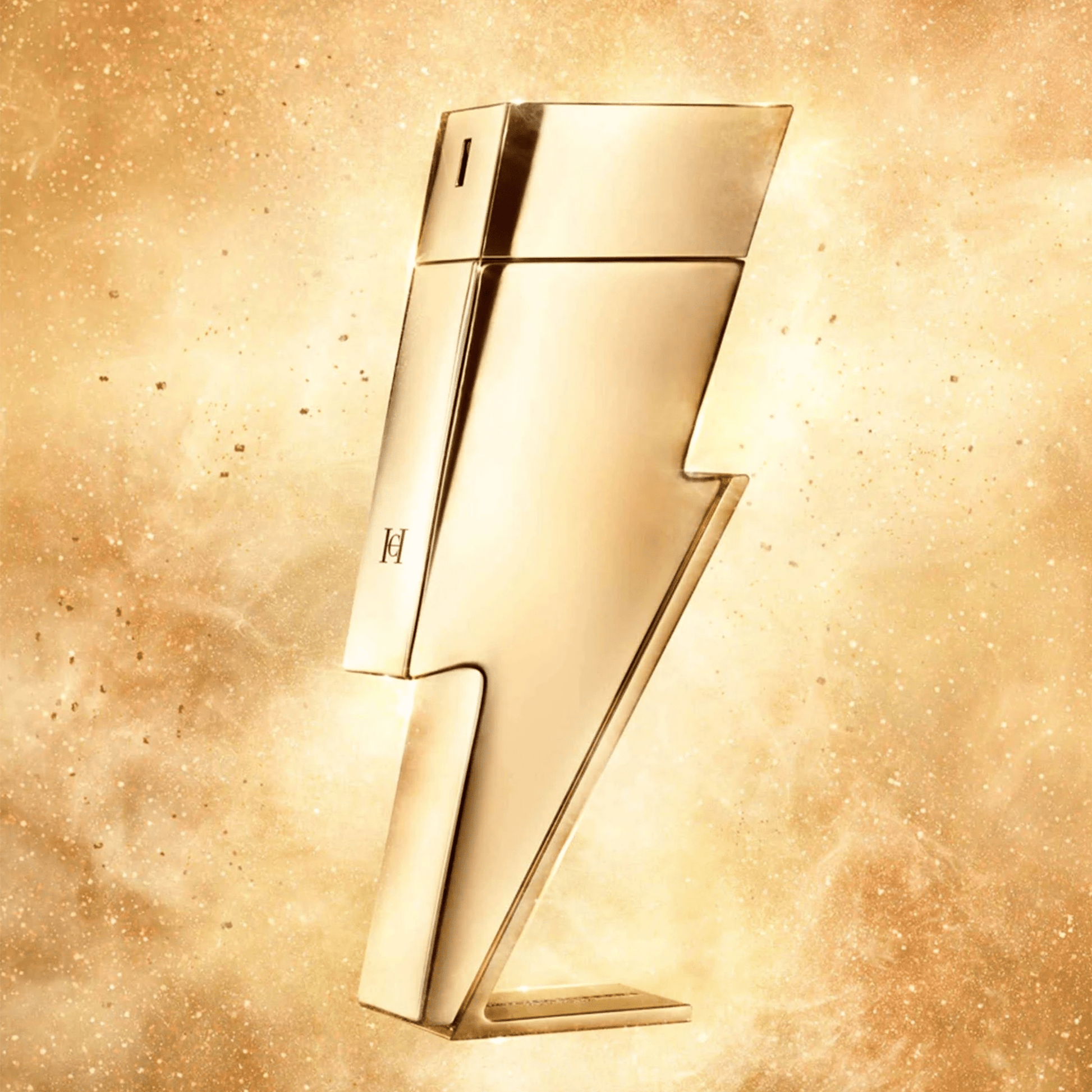 The Bottle: Dipped in lustrous gold, this sumptuous take on Bad Boy's iconic lightning bolt exudes luxury, reflecting the play of light and shadow that defines this electrifying scent.