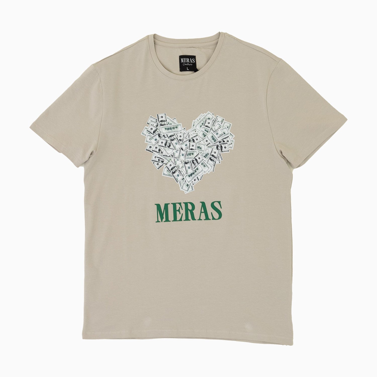 This Meras Men's Money Heart Graphic Short Sleeve T-Shirt is a stylish and comfortable addition to any wardrobe. Made from high-quality material, it features a unique graphic design that will make a statement. With its short sleeves and classic fit, this shirt is perfect for everyday wear. Show off your love for fashion and money with this must-have piece.