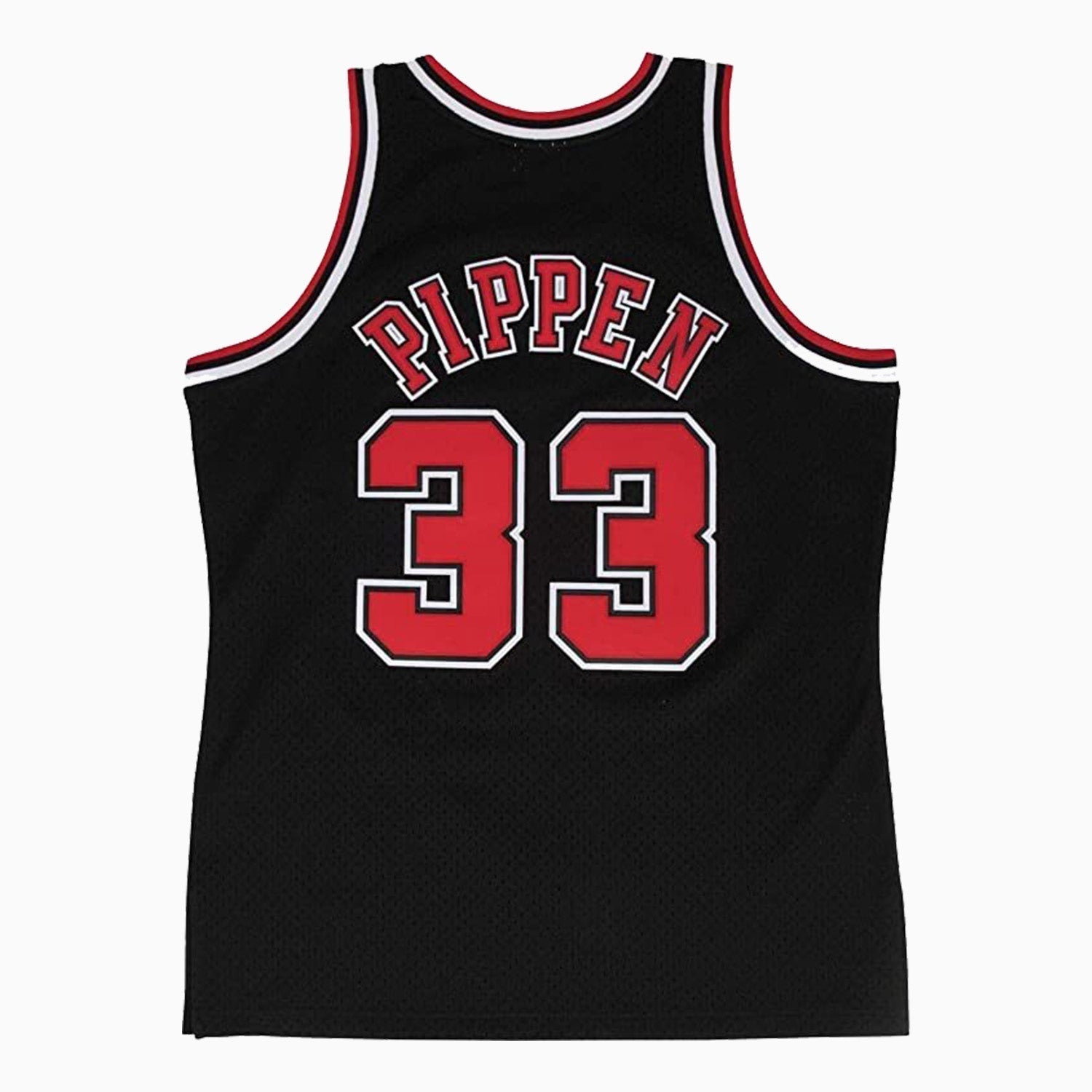 Mitchell & Ness Youth Chicago Bulls Scottie Pippen 1997-98 NBA Swingman Jersey features knit 1x1 rib striped trim at neckline and armholes, NBA logo man woven heat seal label is applied at upper left shoulder besides Mitchell & Ness HWC Swingman woven jocktag and woven label player name/year ID at lower left front. Paying tribute to the legendary former basketball player of NBA.