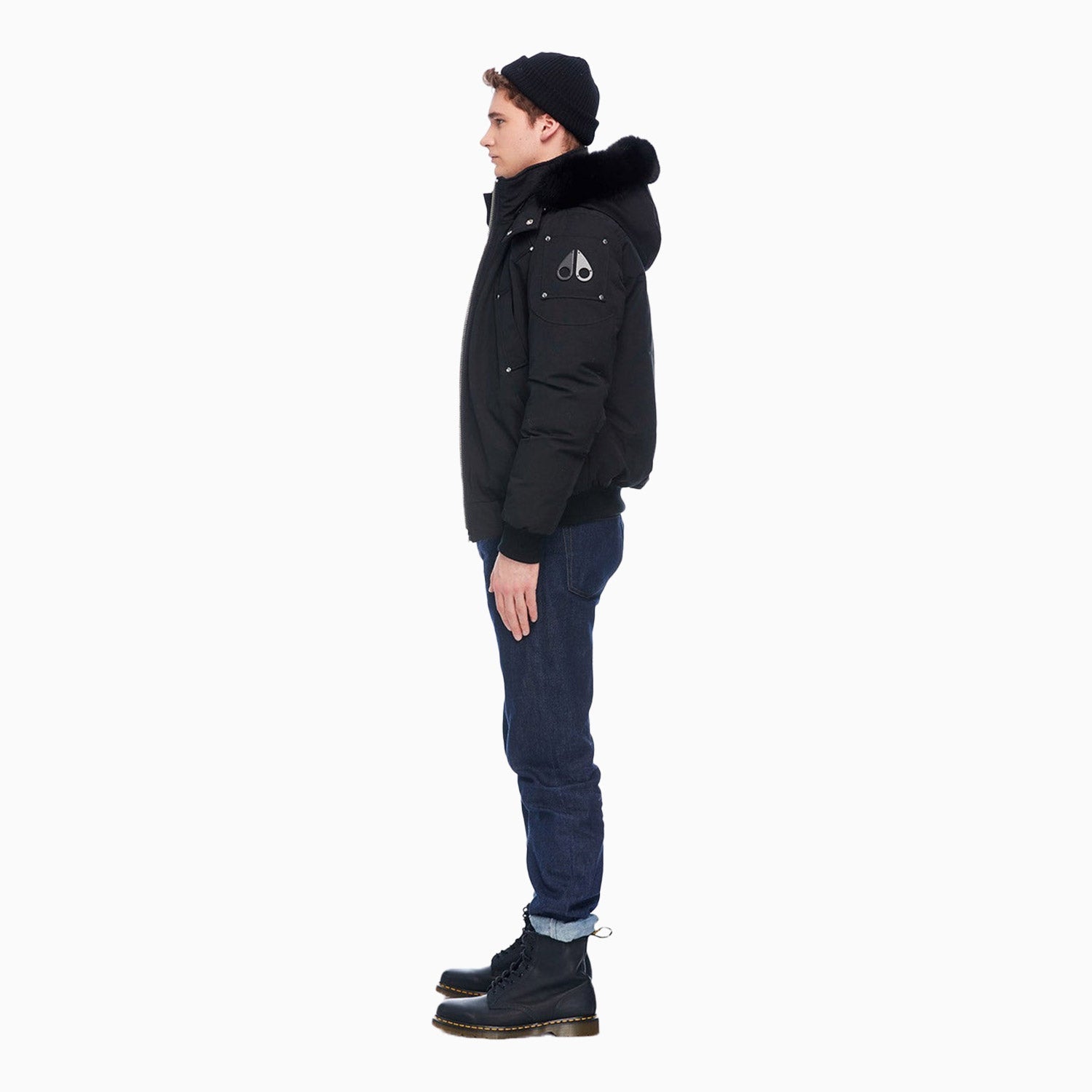 Moose Knuckles Men's Ballistic Hooded Full-Zip Bomber Jacket featuring a detachable two-way adjustable hood, stand collar, YKK metal zipper at front, four soft-touch brushed pockets, 2 interior zippered pockets, each signature sleeve logo is unique and chosen at random during the final stage of construction, rib-knit storm cuffs and hem. A durable clothing for winter nights out and dinners.