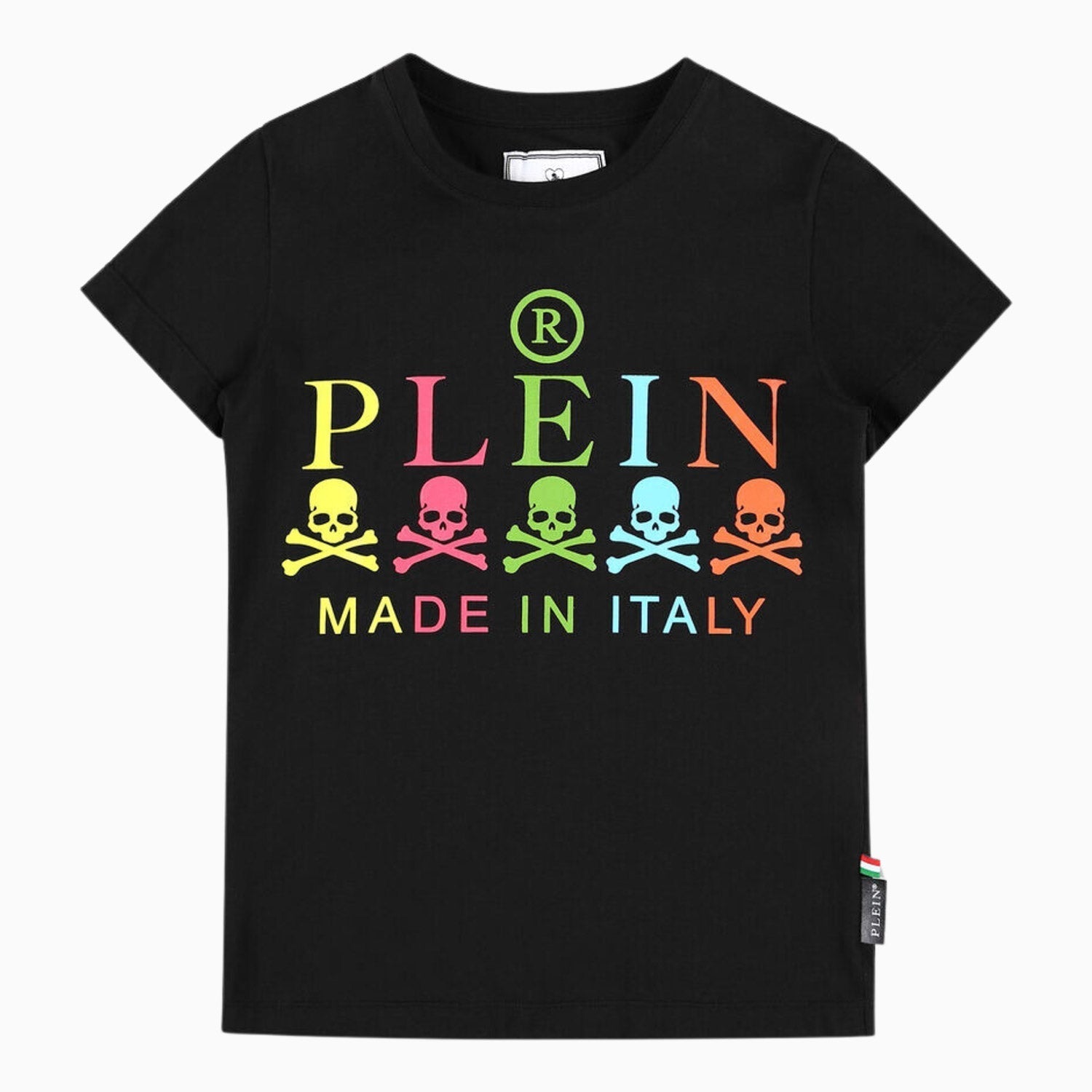 This Kid's Skull And Plein Mini Me Short Sleeve T Shirt is a great way to dress up your little one in style. Made with 100% cotton, this shirt is extremely soft and comfortable. The unique skull and plein design is fashionable and sure to stand out. Perfect for any occasion, your child will love wearing this stylish T-shirt.