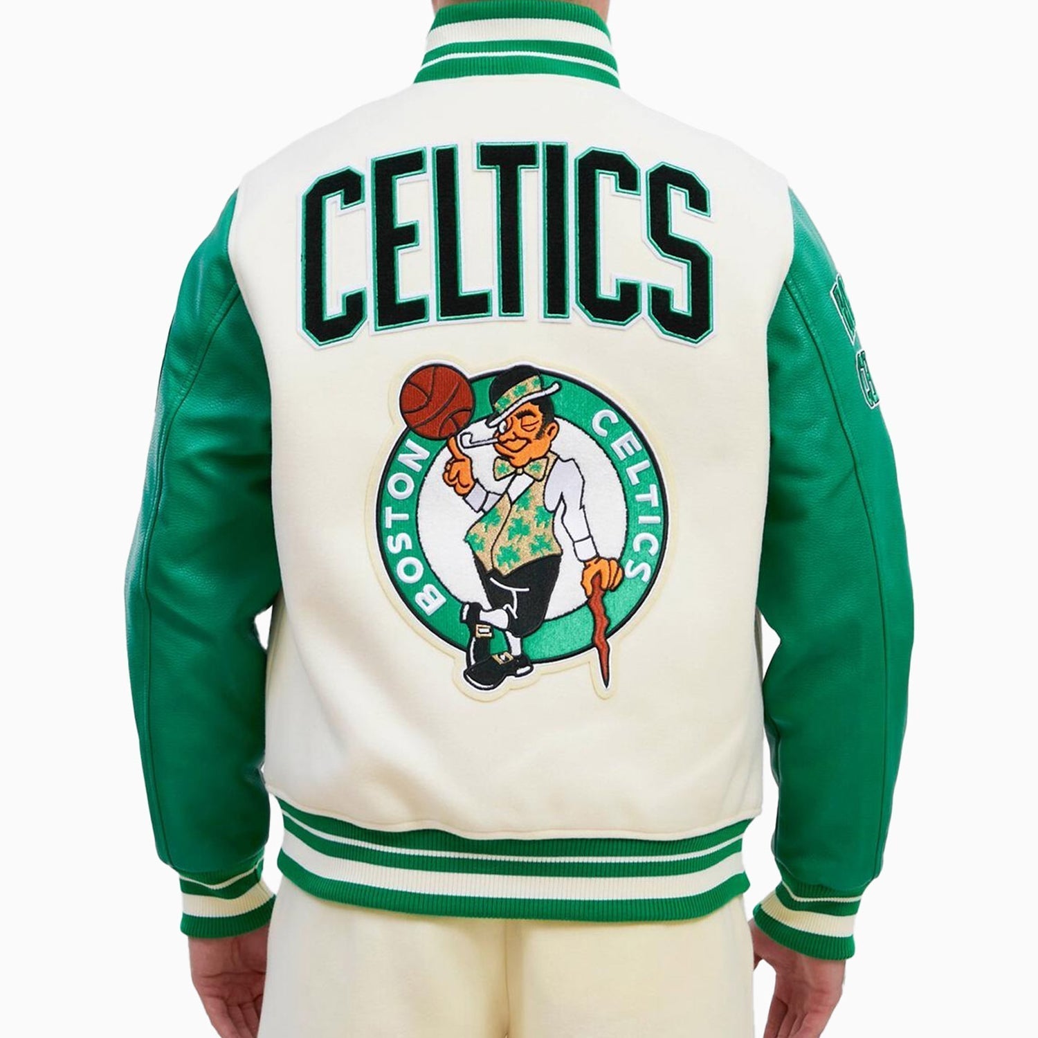 Step up your game with the Pro Standard Men's Boston Celtics NBA Wool Varsity Jacket. Made with high-quality wool, this varsity jacket showcases your team spirit and keeps you warm during cooler games. Represent the Celtics while staying stylish and comfortable.