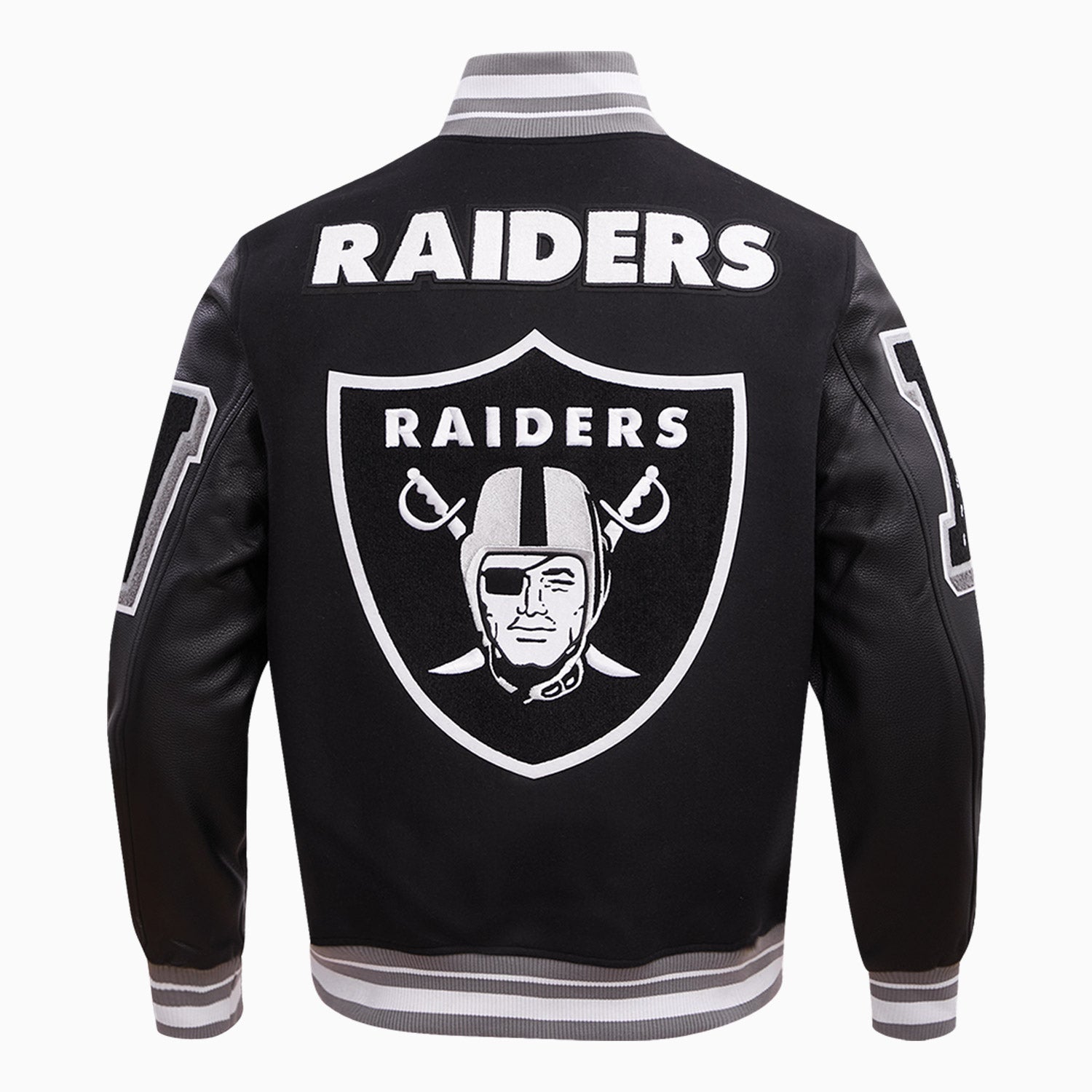 Expertly crafted by Pro Standard, this Men's Las Vegas Raiders NFL Rib Wool Varsity Jacket is a must-have for any fan. Made with high-quality wool and detailed with team graphics, it offers warmth and team pride in one stylish package. Whether at the game or out on the town, show off your love for the Raiders with this jacket.