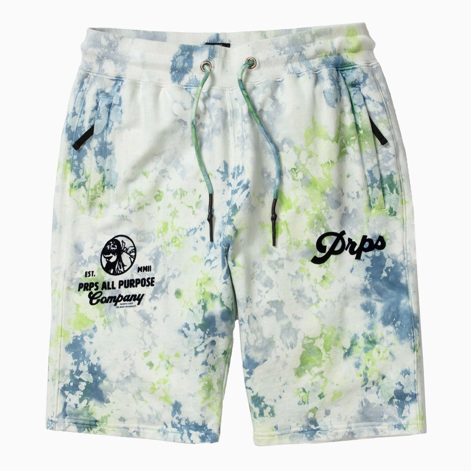 Stay comfortable and stylish this summer with Prps Men's Nara Pocket Shorts. Made with high-quality materials, these shorts offer a perfect fit and are designed with multiple pockets for added convenience. These shorts are ideal for any casual occasion and will quickly become a wardrobe essential. The Nara Short is an icy tie-dye men's knit short featuring flocked Prps graphics and branding. It coordinates with our Nara Tee.