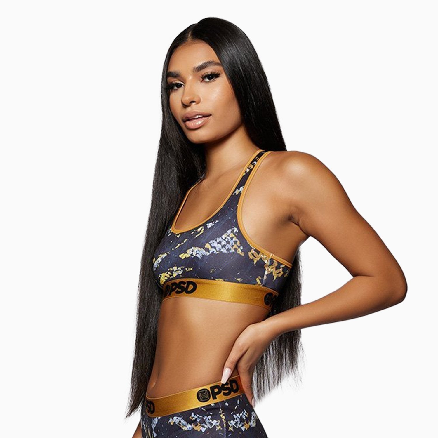 PSD Underwear Womens Bandana Split Sports Bra offers mesh fabric (a blend of polyester and spandex) with a perforated system to keep you cool and fresh besides ultra-light material that is soft to the touch and makes you comfortable in sporty activities.