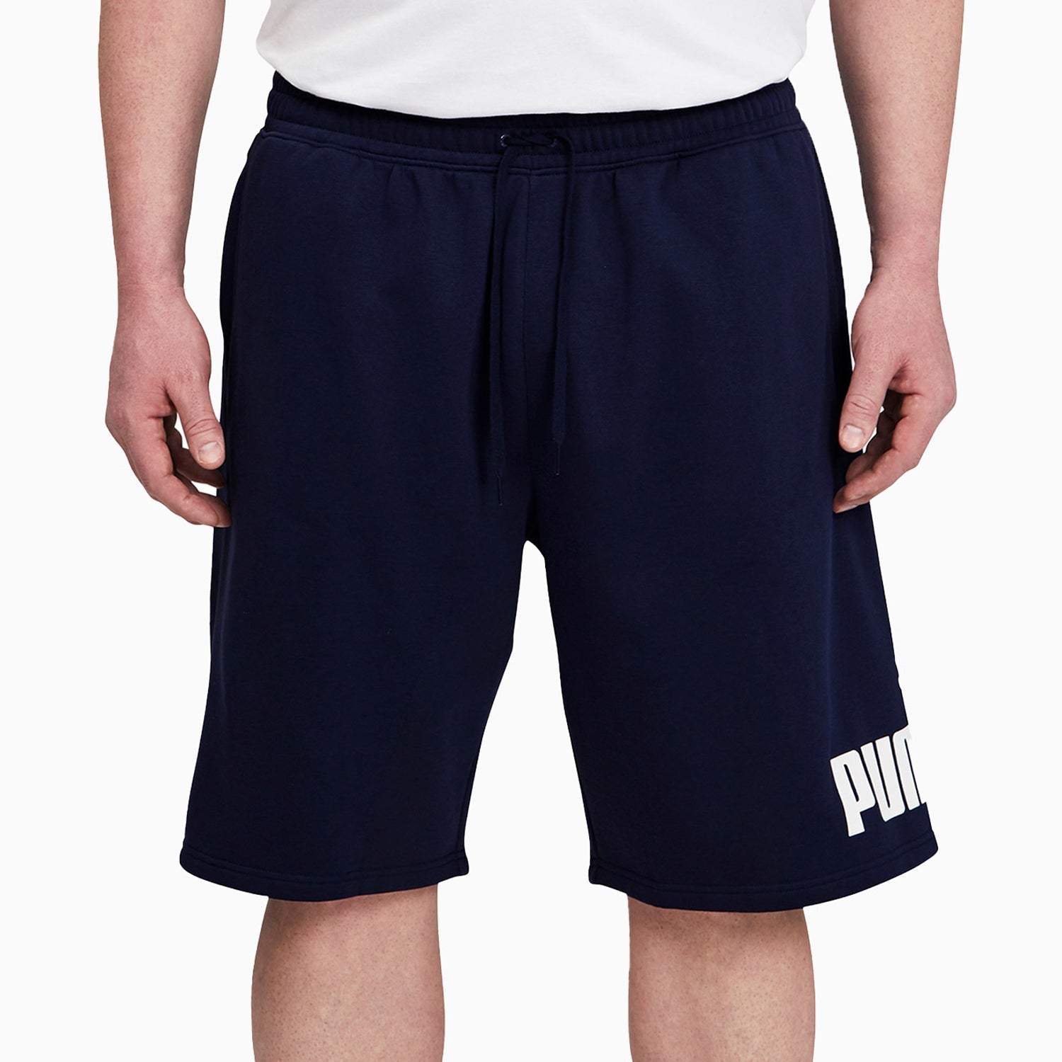Puma Men's Big Fleece Logo Shorts offer comfort and style. These shorts are made with soft fleece and feature a large Puma logo on the side. The adjustable drawcord and waistband provide a secure fit, while the zippered pockets keep your belongings secure. Enjoy comfort and style with these fleece logo shorts.