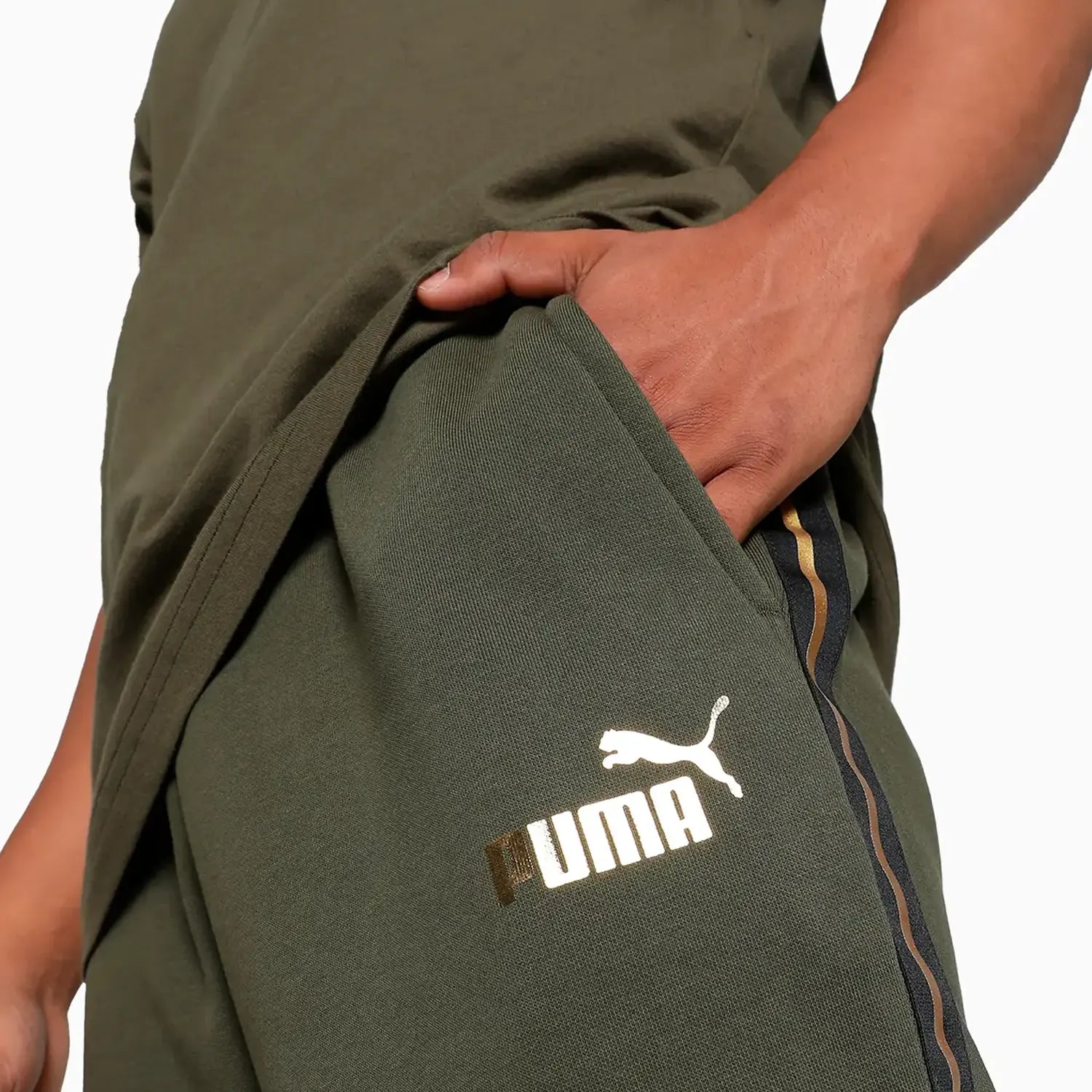 Upgrade your workout wardrobe with the Puma Men's ESS Tape Minimal Gold Outfit. Made with high-quality materials and designed for optimal comfort and performance, this outfit will elevate your training sessions. The sleek, minimal design and gold accents add style to your athletic gear. Boost your athletic potential with this top-of-the-line outfit.