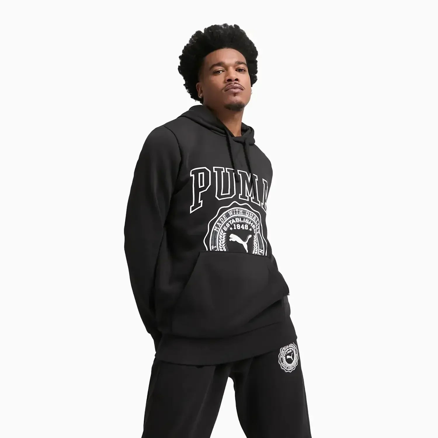 Introducing the Puma Men's Vintage Sport Sweatpant. Made with high-quality materials, these sweatpants provide superior comfort and durability. The vintage design adds a touch of style to your workout attire. Stay cool and comfortable while looking effortlessly cool. Upgrade your activewear with Puma.