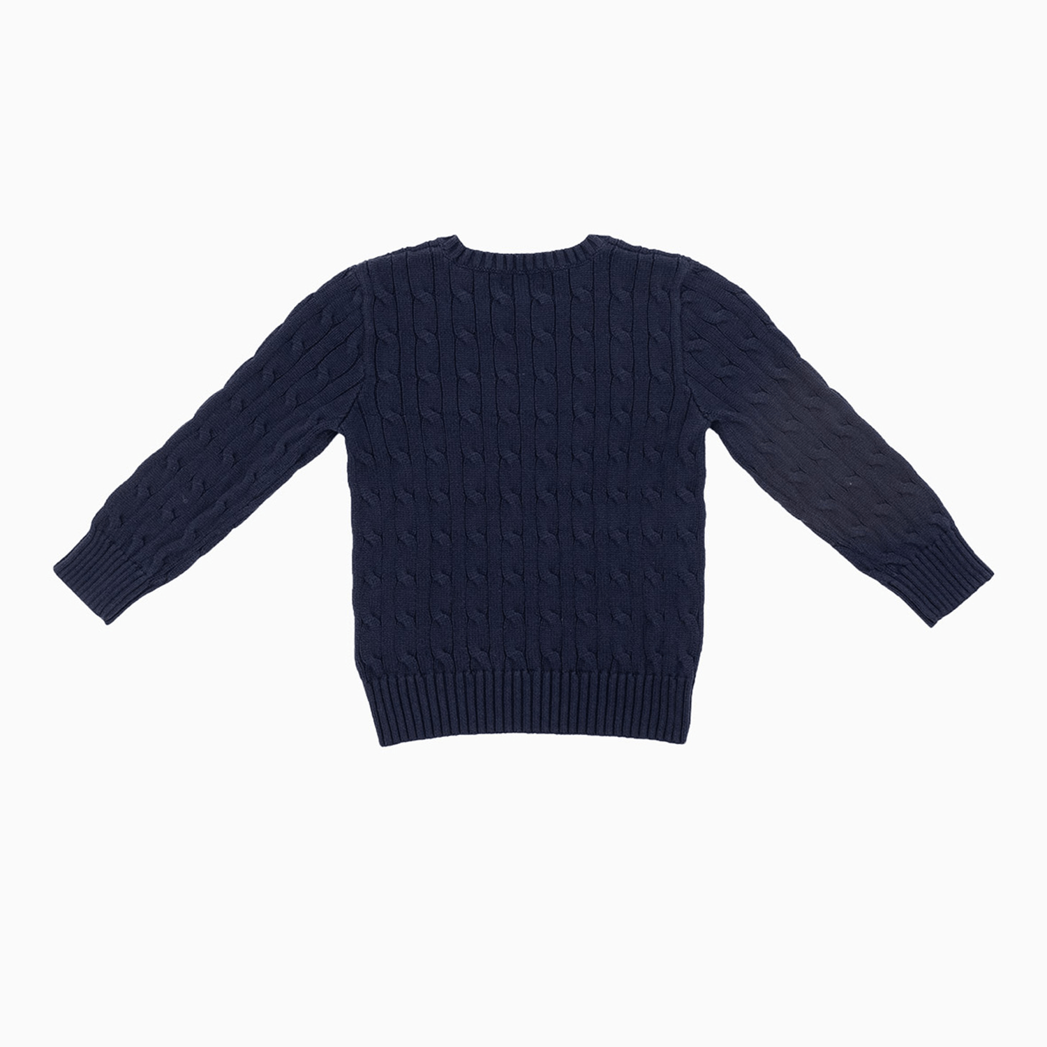 Made from high-quality cotton, this Kid's Cable Knit Sweater by Ralph Lauren is a durable and stylish addition to any child's wardrobe. With its classic cable knit design and soft fabric, this sweater provides comfort and warmth while also showcasing a timeless fashion. Perfect for any occasion or season.
