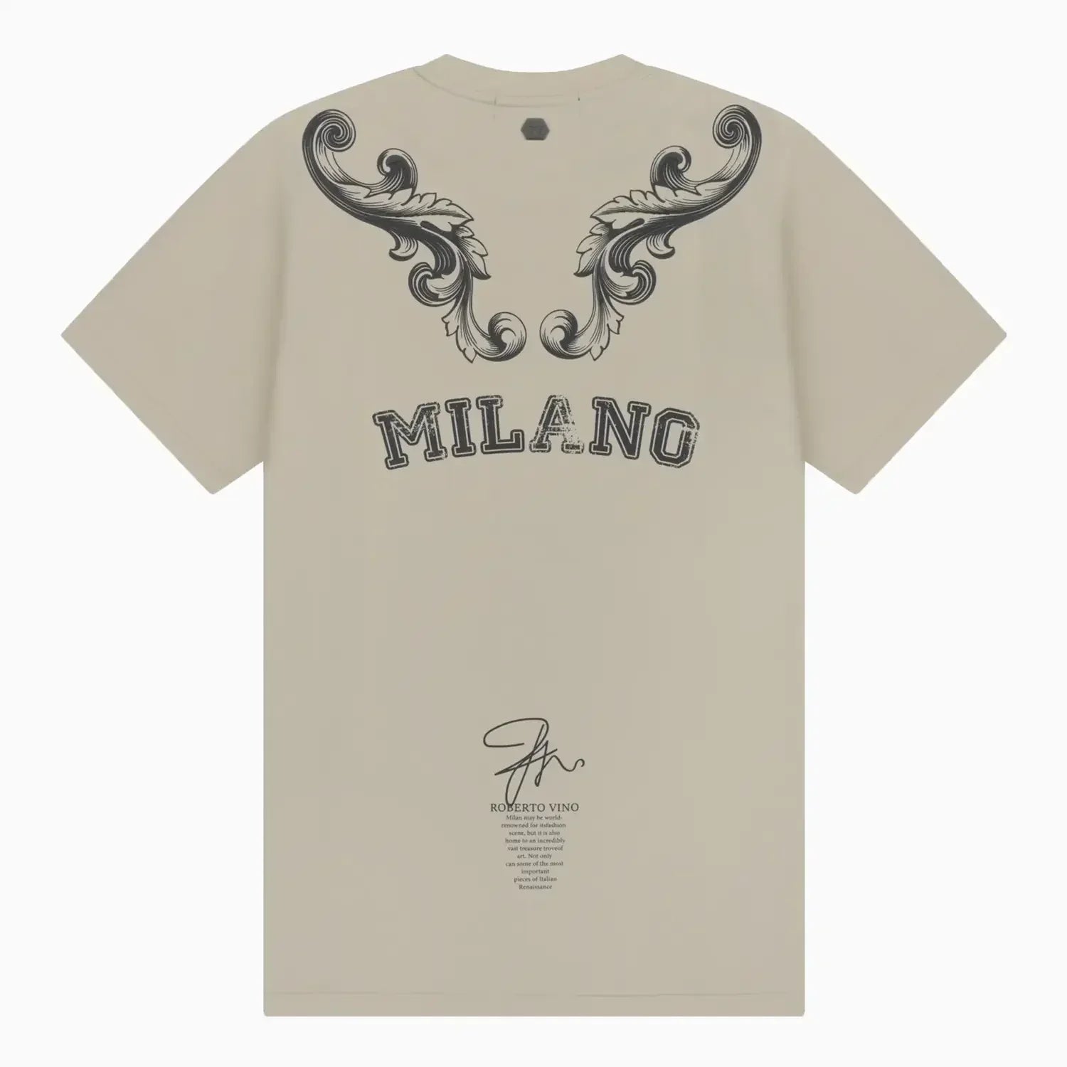 - Subtle Roberto Vino Milano logo on the chest