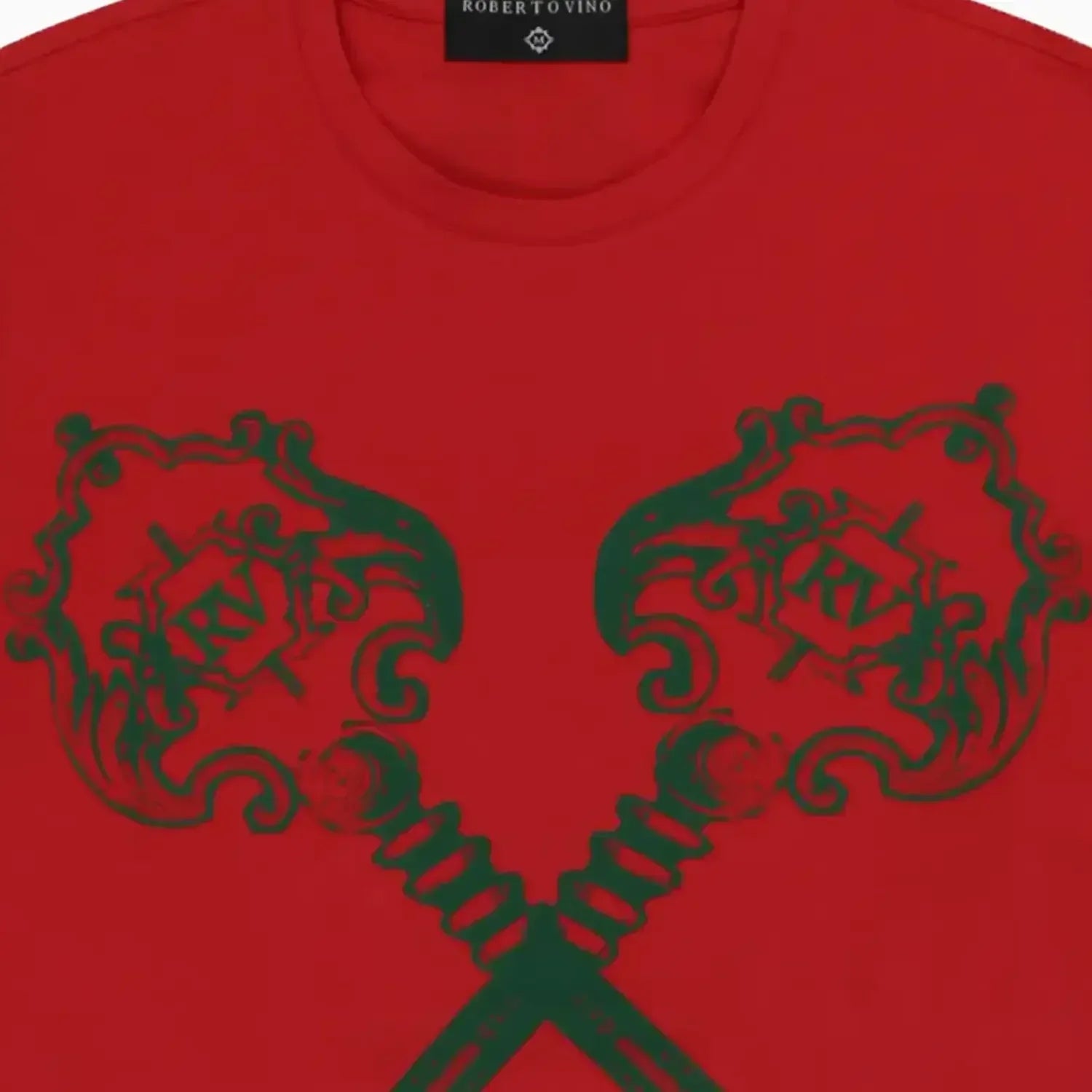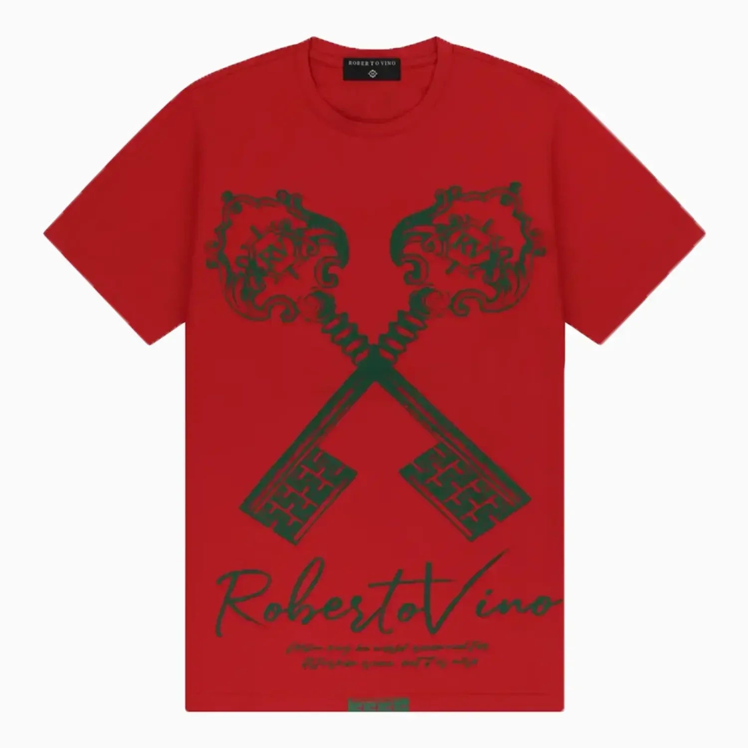 - Large crossed key graphic on the front with Roberto Vino branding