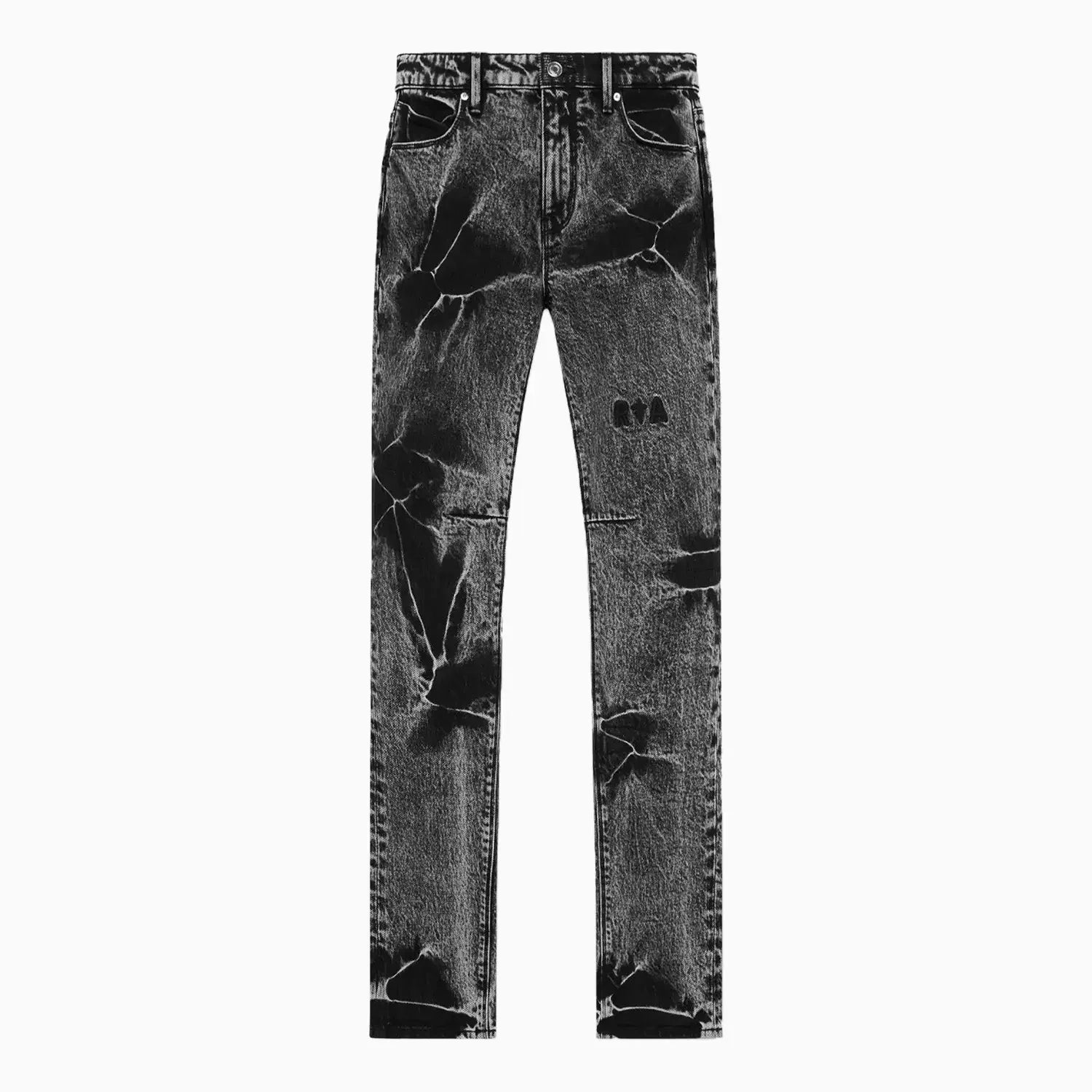 The Bryant Skinny Jean in Flower Acid Wash features a button front, zip fly, belt loops, front scoop pockets, and back patch pockets. Finished with monochromatic RTA logo stitched on the leg, classic RTA cross along the back pocket, and acid wash detailing.
