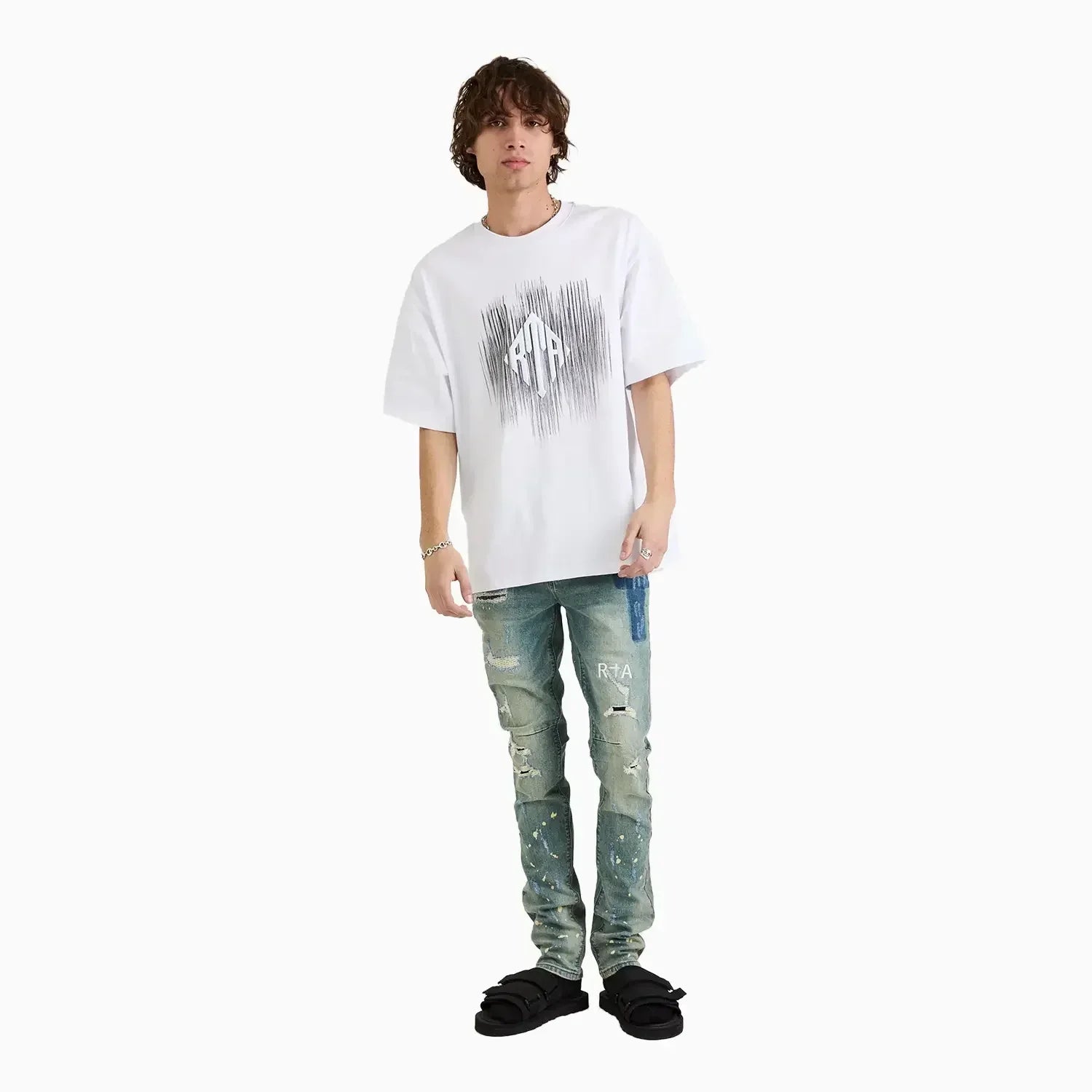 The Colin Oversized Short Sleeve Tee in White Etched Monogram is an oversized, crew neck tee made from 100% Cotton. This tee features a monogram logo on the chest and contrasting etched design.