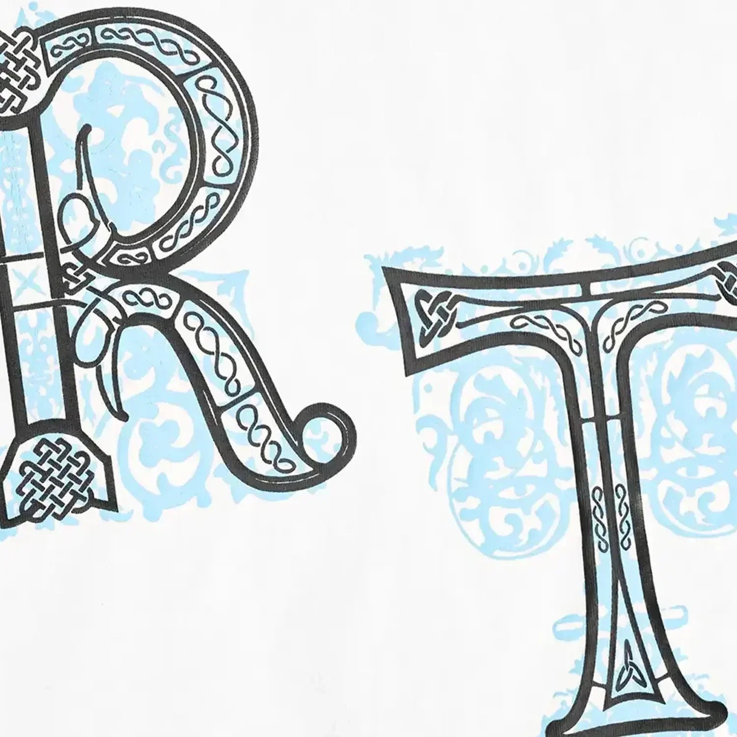 The Liam Short Sleeve Tee in White Illuminated Diagonal is a regular fit, crew neck tee made from 100% cotton featuring a large RTA logo in a decorative, illuminated font written diagonally across the front.