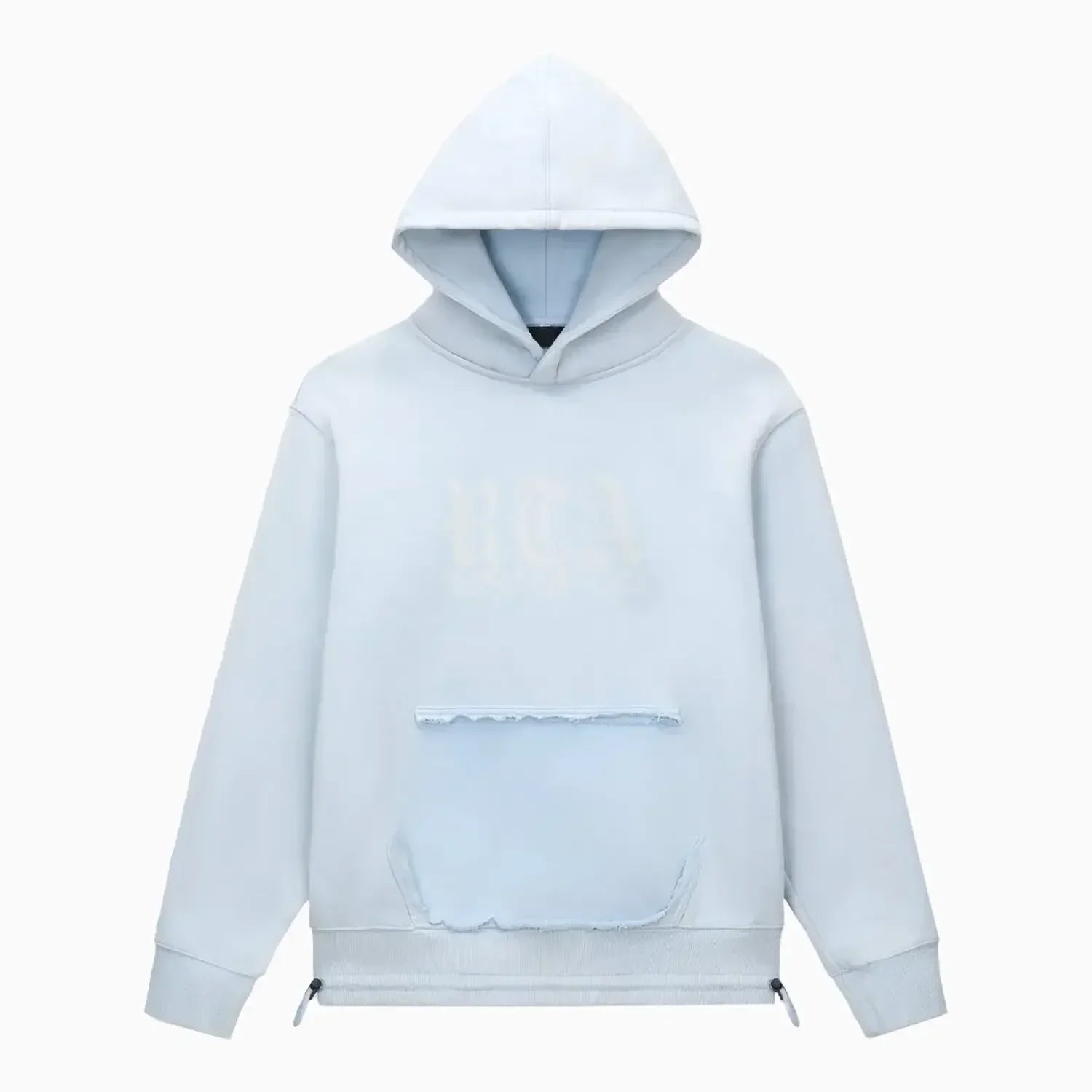The Jordan Hoodie in Spirit Blue Purgatory is made from 100% Cotton. This hoodie is designed with a vintage wash, distressed detailing, a torn-out kangaroo pocket and features toggle drawstrings at the waistband for an adjustable fit.