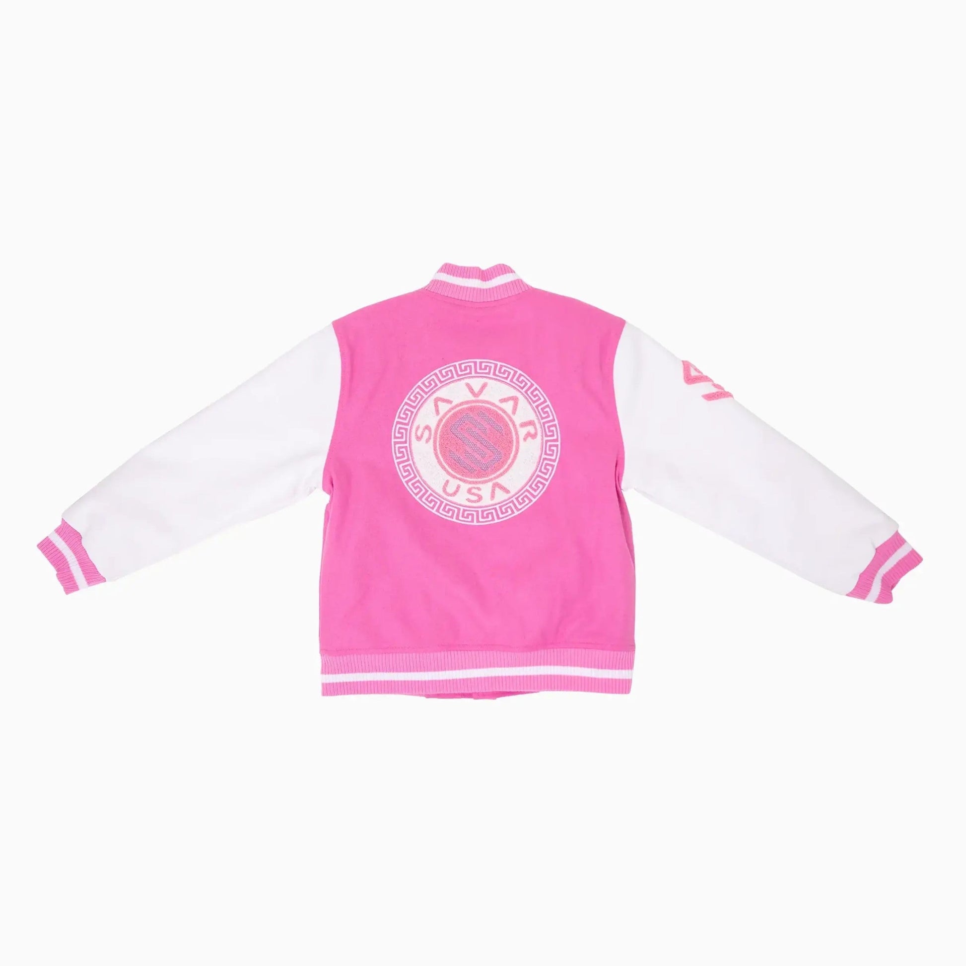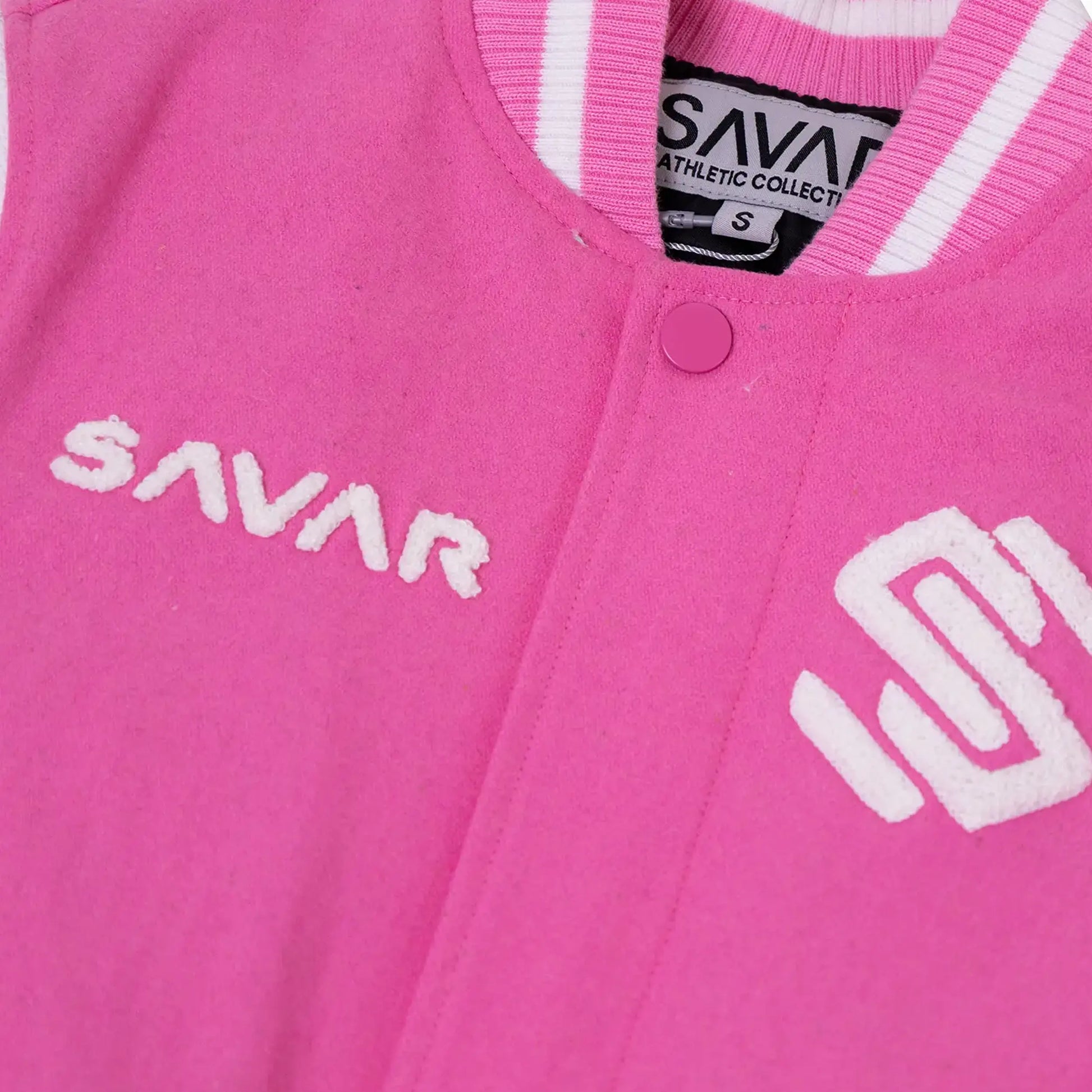 Experience ultimate comfort and style with the Savar Women's Circle Wool Varsity Jacket. Made from high-quality wool, this jacket offers warmth and durability. The circle design adds a unique touch, making it a standout piece in your wardrobe. Perfect for any casual or athletic occasion.