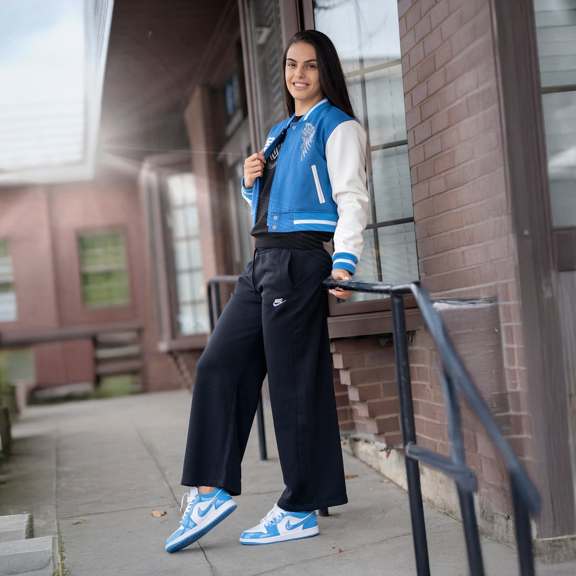 Expertly crafted with high quality wool, the Savar Women's Wings Wool Varsity Jacket is a must-have for any fashion-forward individual. This jacket boast soft inner lining and a unique wing design, adding a touch of sophistication to any outfit. Stay warm and stylish with this timeless piece.