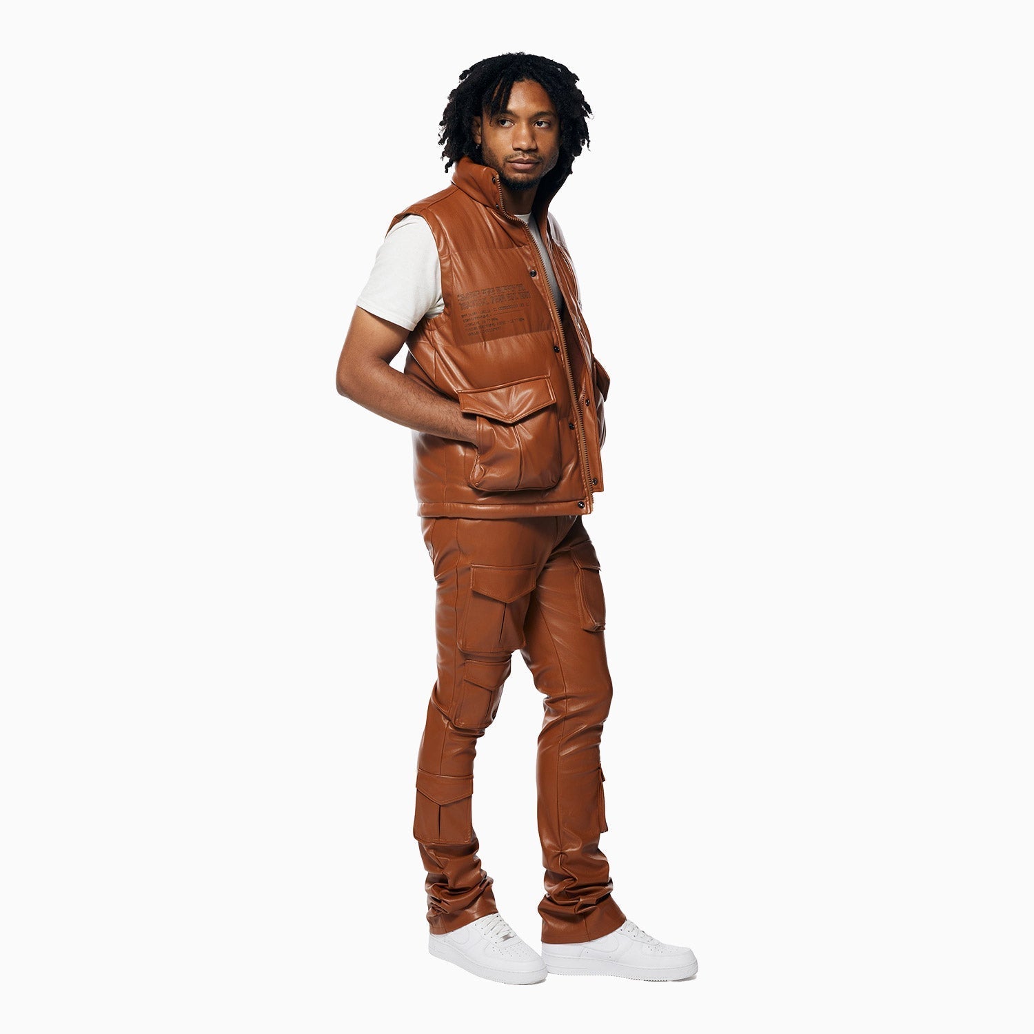 This Smoke Rise Men's Utility Vegan Leather Vest Jacket is perfect for any stylish and comfortable outfit. Featuring a classic design, this jacket is made with cruelty-free, vegan leather that is both lightweight and durable. With multiple pockets for storage, you'll be able to take all your essentials with you.