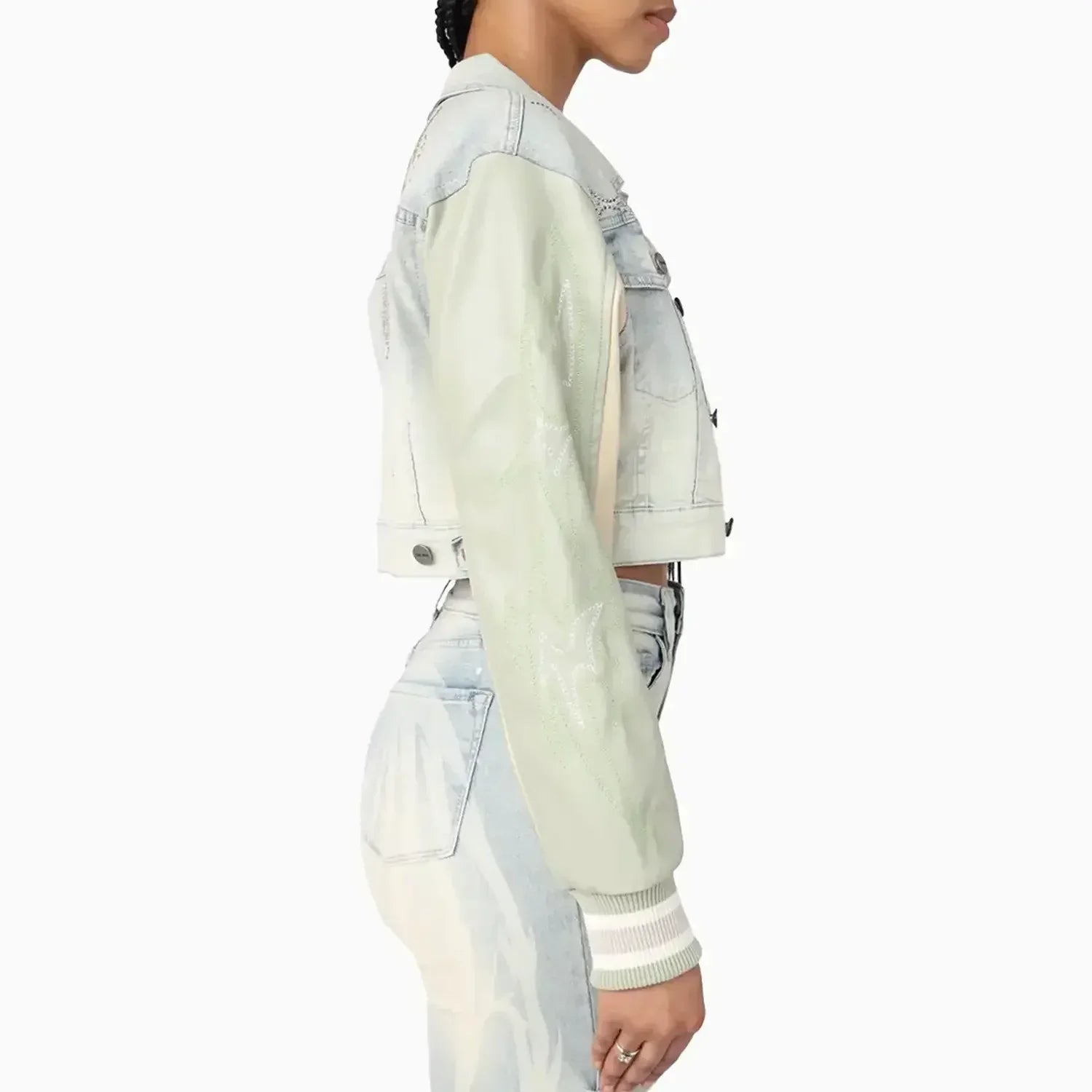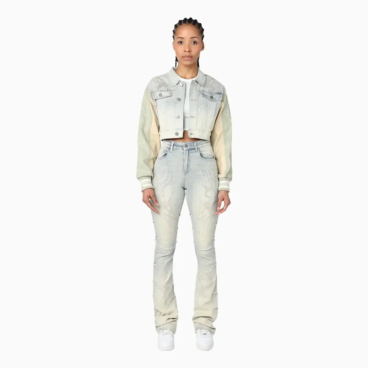 The Smoke Rise Women's Cropped Rhinestone Jean Jacket adds a touch of glamour to any outfit. Featuring dazzling rhinestones and a cropped design, this jacket is perfect for both casual and dressy occasions. Expertly crafted with high-quality materials, it offers both style and durability. Elevate your wardrobe with this must-have piece.
