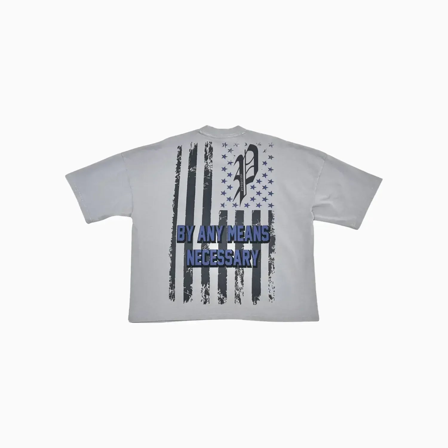Infuse your wardrobe with attitude with our Men's By Any Means Necessary Drop Shoulders T-Shirt. The bold design featuring drop shoulders and a striking "By Any Means Necessary" graphic makes a powerful statement. Made with high-quality materials, this tee is both comfortable and durable.