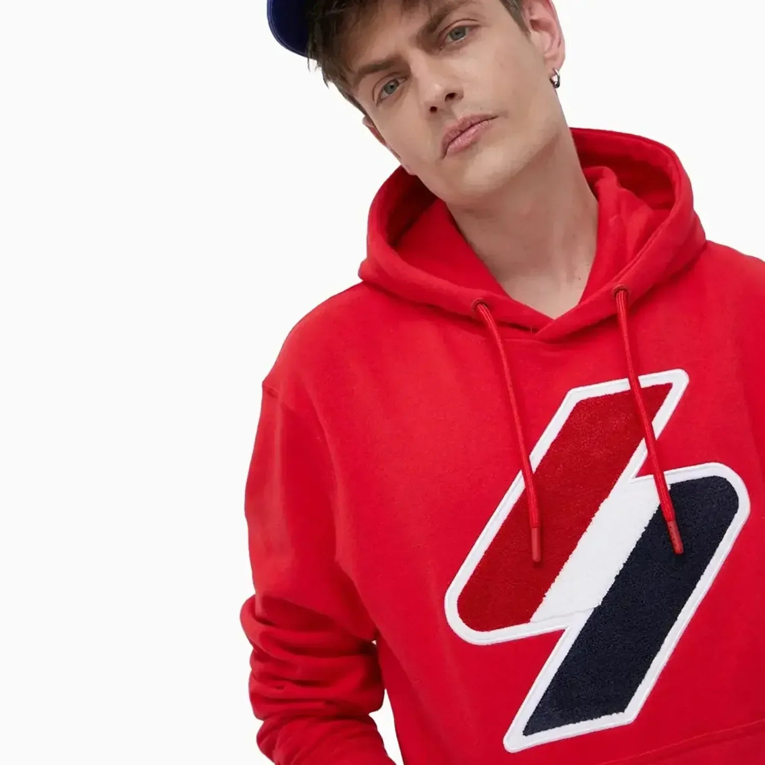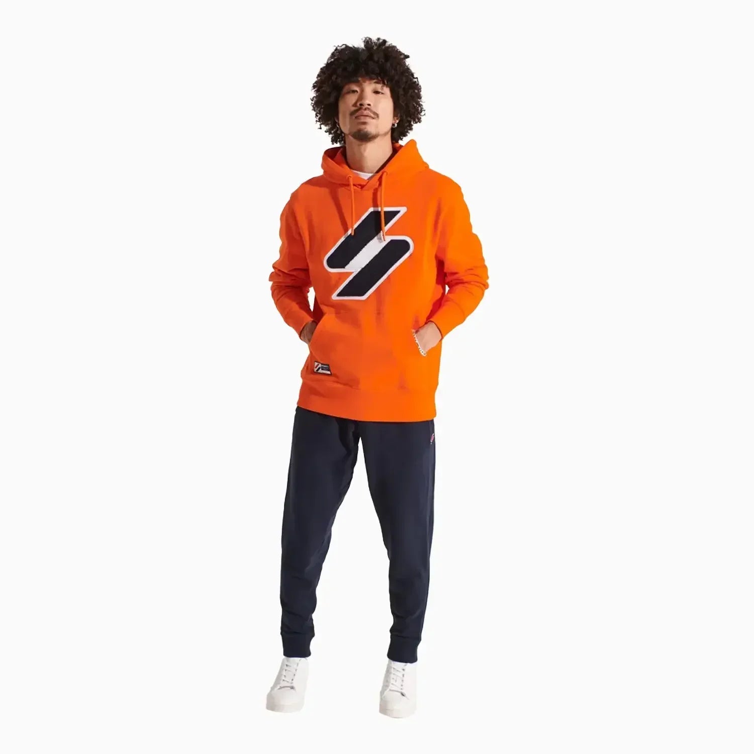 Create an everlasting impact with Superdry Men's Superdry Code Logo Hoodie featuring an overhead design, drawstring hood, loopback lining, front pouch pocket, and chenille front graphic in a loose fit style.