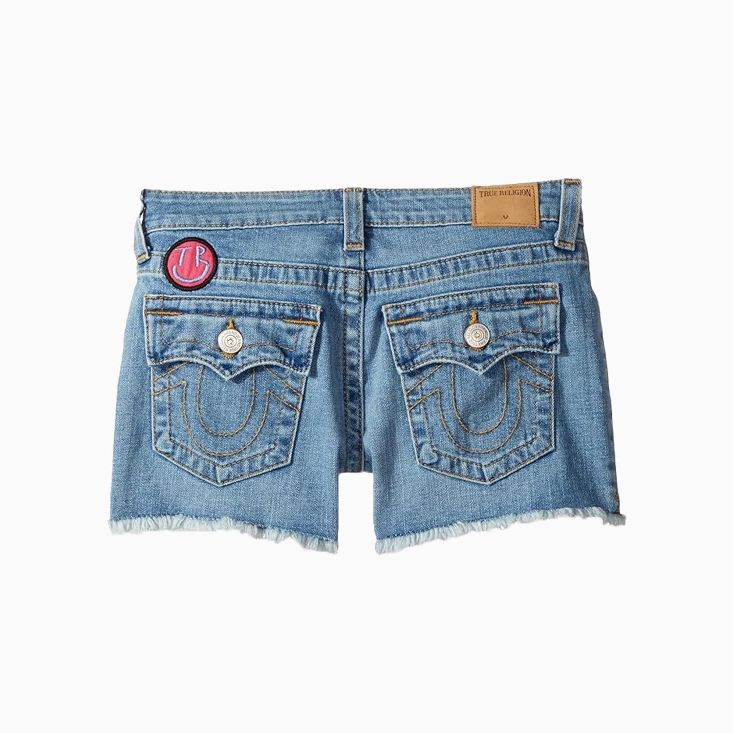 These True Religion Kid's Patched Fashion Denim Shorts are a perfect addition to any stylish child's wardrobe. The unique patchwork design adds a touch of fashion and individuality, while the denim material provides comfort and durability. The perfect shorts for a trendy, yet practical look.