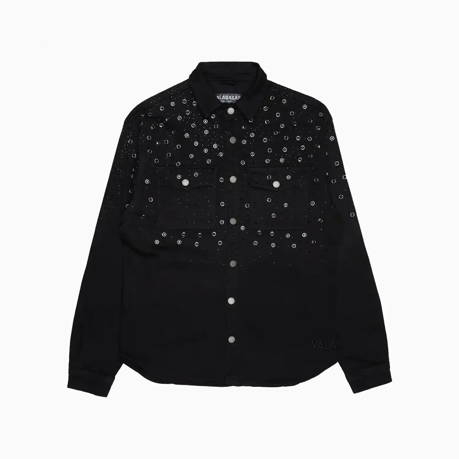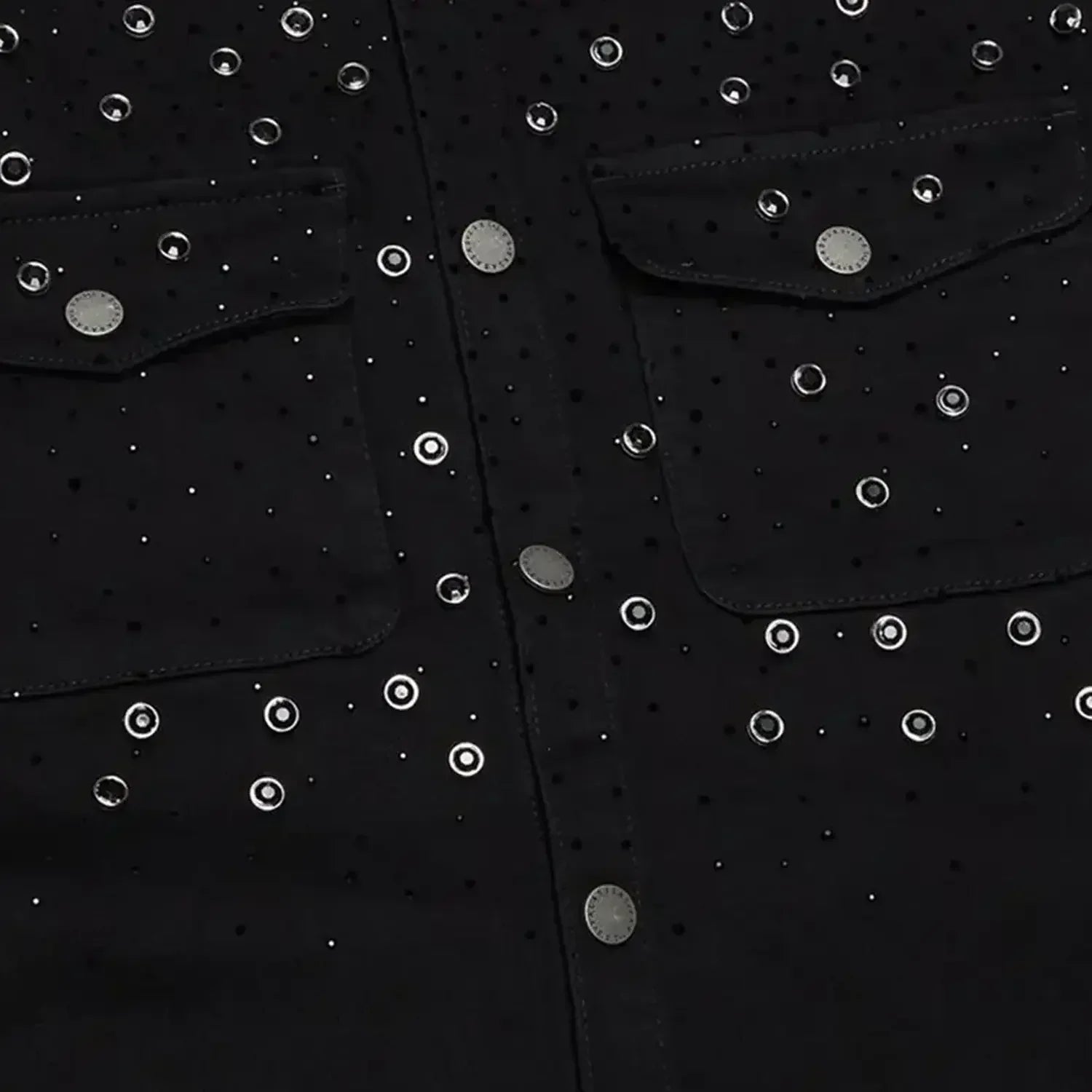 A statement piece that fuses classic denim with bold embellishments, the Blitz Denim Jacket in Black Washed features an intricate rhinestone gradient cascading from the shoulders for an eye-catching shimmer effect. Crafted from a high-quality blend of 98% cotton and 2% spandex, this jacket offers comfort, flexibility, and durability, making it a standout layering essential.
