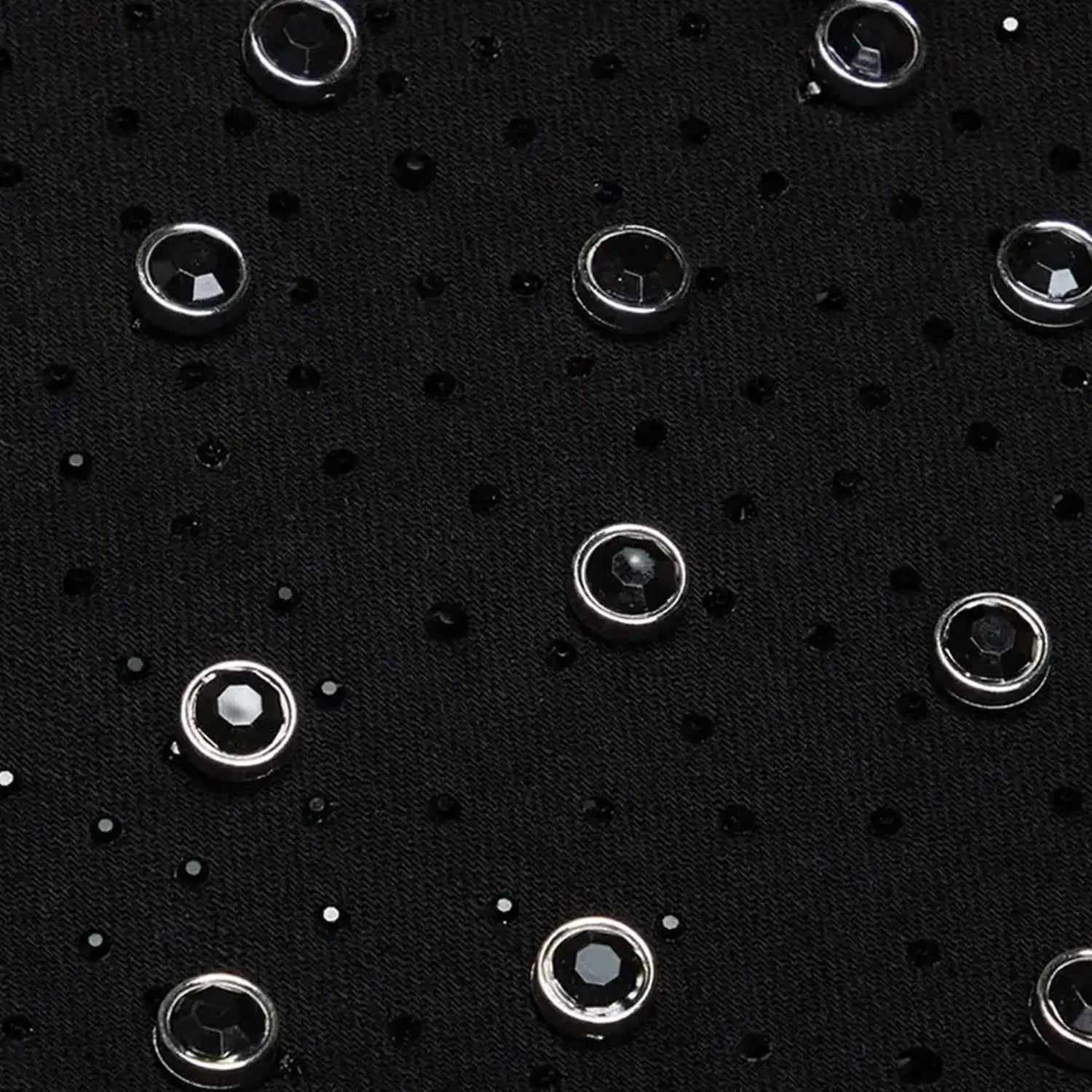 - Hand-placed rhinestone detailing for a striking, shimmering effect